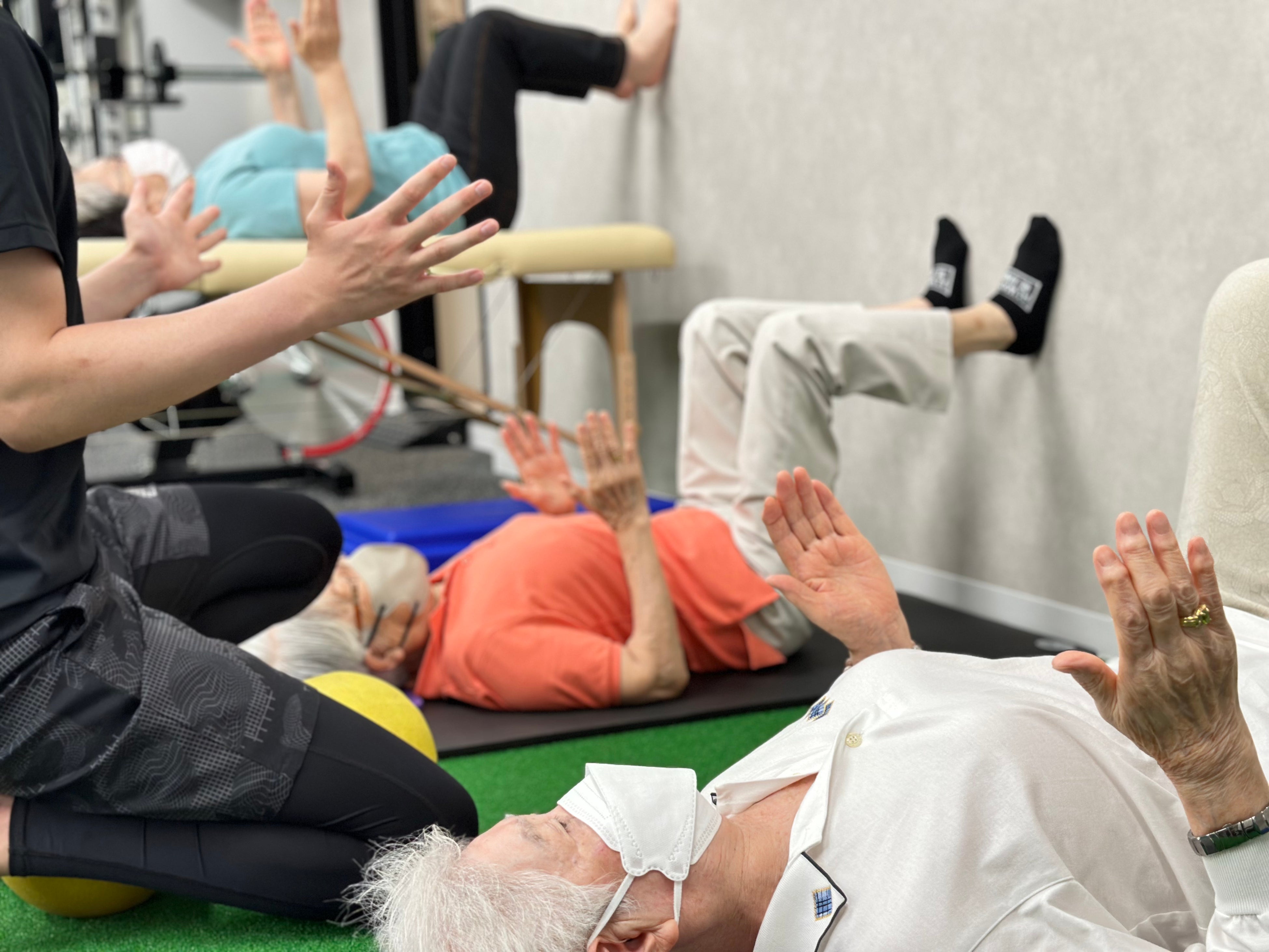 「いつまでも自分の足で歩きたい」その想いを体現するために3時間の機能訓練に多くの利用者様が取り組んでいます。一概に筋肉を鍛えるだけの機能訓練ではなく、日常生活動作を作り上げている脳の状態、感覚器、神経系などに対してもアプローチする形の機能訓練には、最高齢97歳の方も参加しています。