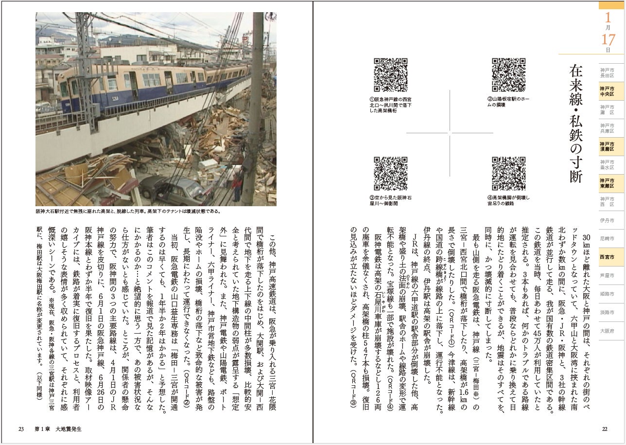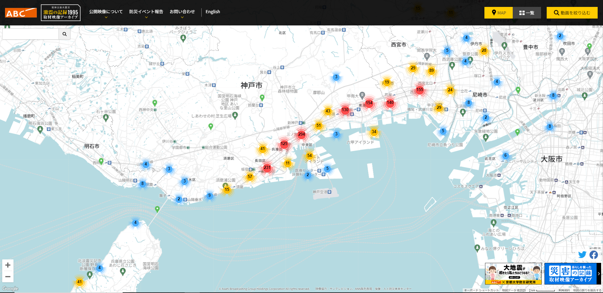 さらに、震災当時と今の様子をWebサイト上で見比べるバーチャルツアーを実施したり、QRコードを読み取って取材映像を視聴できる書籍『スマホで見る阪神淡路大震災』(http://www.jimotonohon.com/annai/a1565_hanshinawaji.html)を出版するなど、このアーカイブサイトを広くご活用いただける環境作りに取り組んでまいりました。