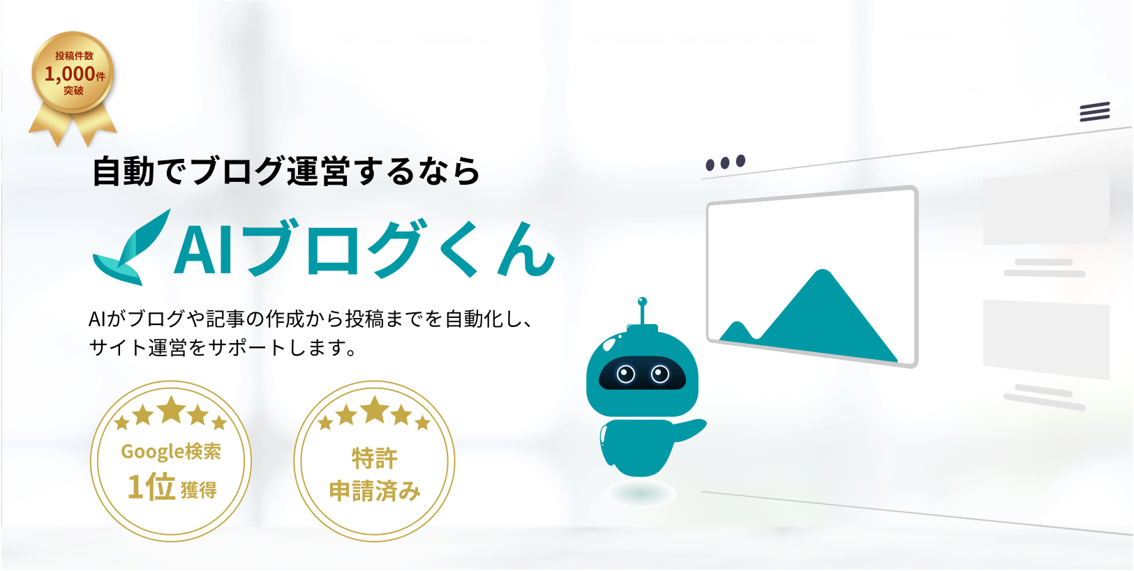 自動ブログでGoogle検索1位を獲得!「AIブログくん」で記事作成から投稿まで完結!誰でも簡単に検索上位を狙える時代へ!