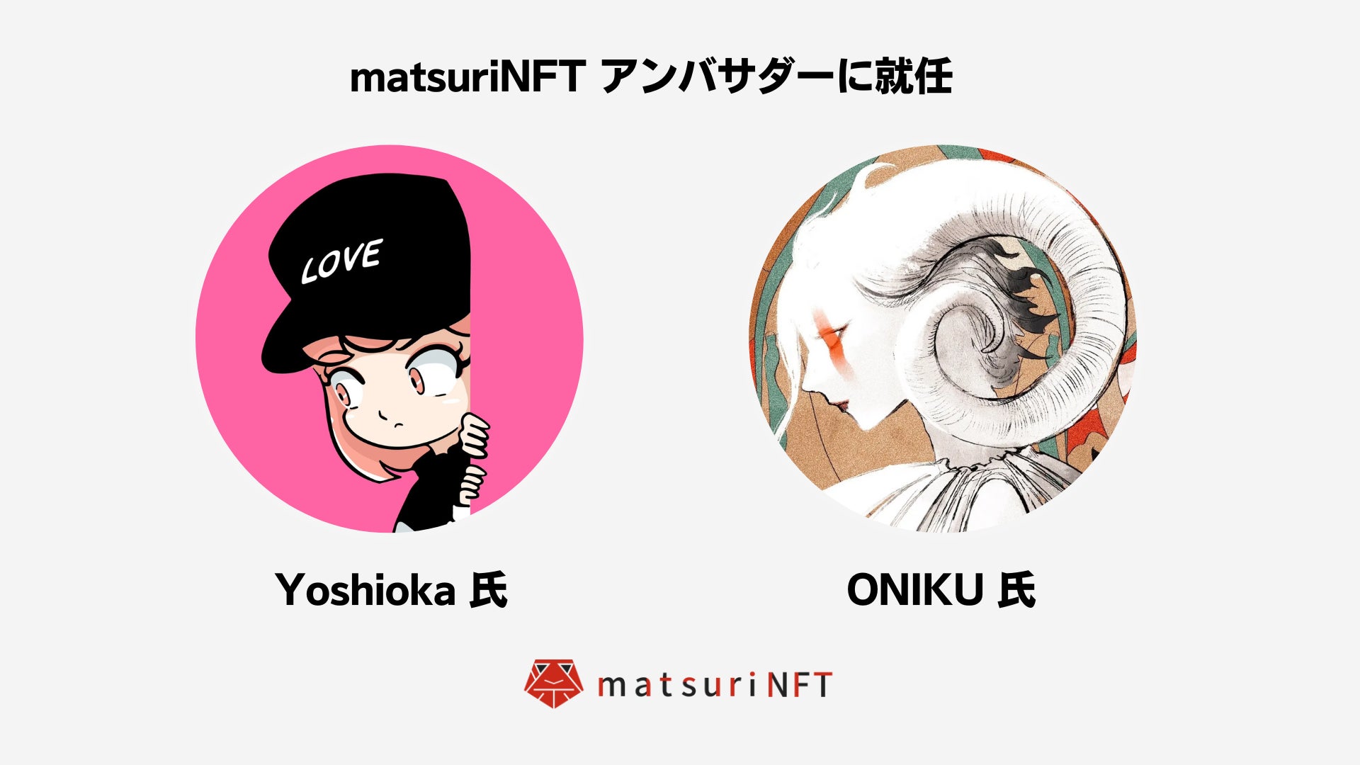 そのお二人にmatsuriNFTのPR活動やコラボ作品の創出など、前回matsuriNFT プロデューサーに就任したカズシ フジイ氏と共にプラットフォームを盛り上げていただきます。