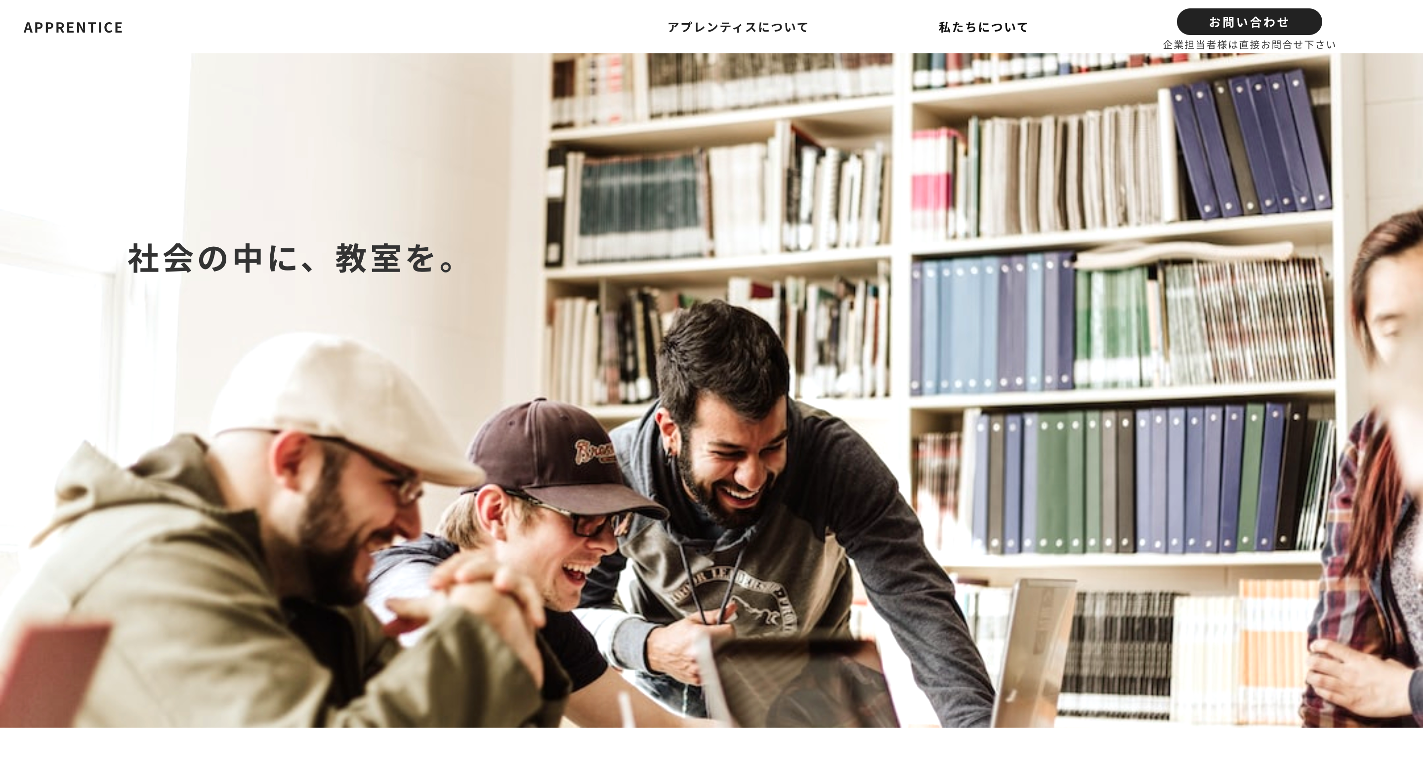 アプレンティスシップは、『社会の中に教室を』をコンセプトに、働きながらエンジニアリングが学べる最高の学習環境 の提供します。