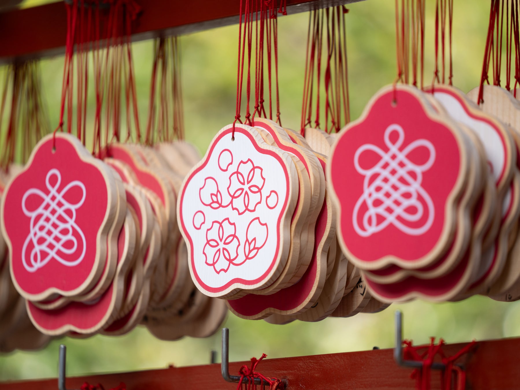 デザインにあたっては、主祭神である木花佐久夜毘売命(このはなさくやひめのみこと)を象徴する社紋を各所に配置し、神社全体に統一感をもたせました。また、授与品は、伝統的な意味を踏まえつつ、現代の価値観やライフスタイルに合ったデザインとしました。