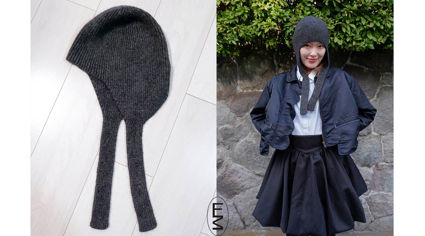 阪急うめだ本店POPUP STORE限定の商品。目が詰まったウールのニット帽は、Foundry Mewsが提案するラブリーな服とのスタイリングにオススメ。これからのホリデーシーズンに向けたギフトにも最適なアイテムです。