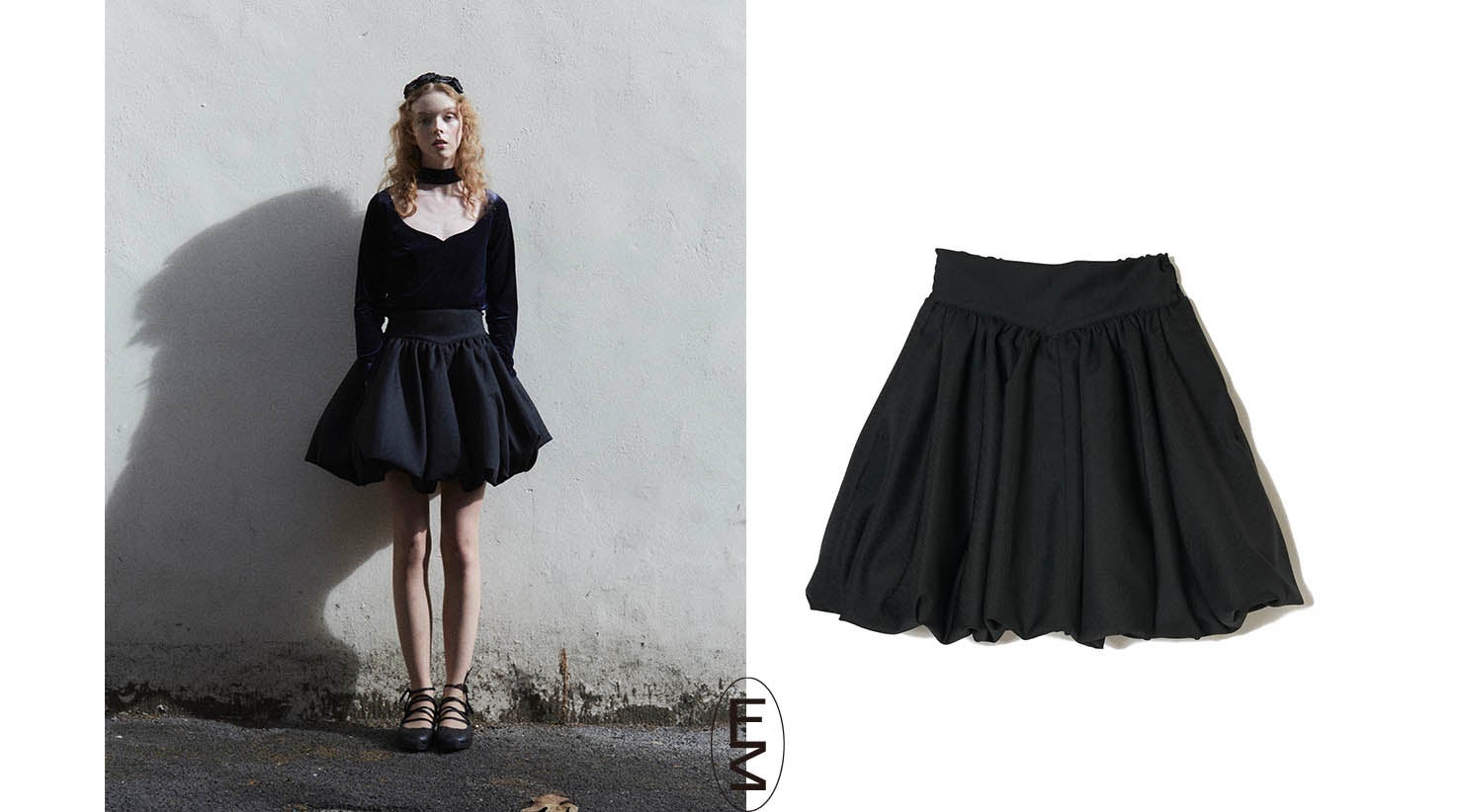 今シーズンFoundryMewsに新しく加わった、個性的なバルーンスカート。柔らかいシルエットながらも、形状を保持するために内側にチュールが施された丈夫な素材が特徴です。また、必需品のポケット付きでウエストの前側は優雅なVラインを演出するデザインになっています。ウエストの後ろにはゴムバンドがあり、誰でも簡単に着脱できます。