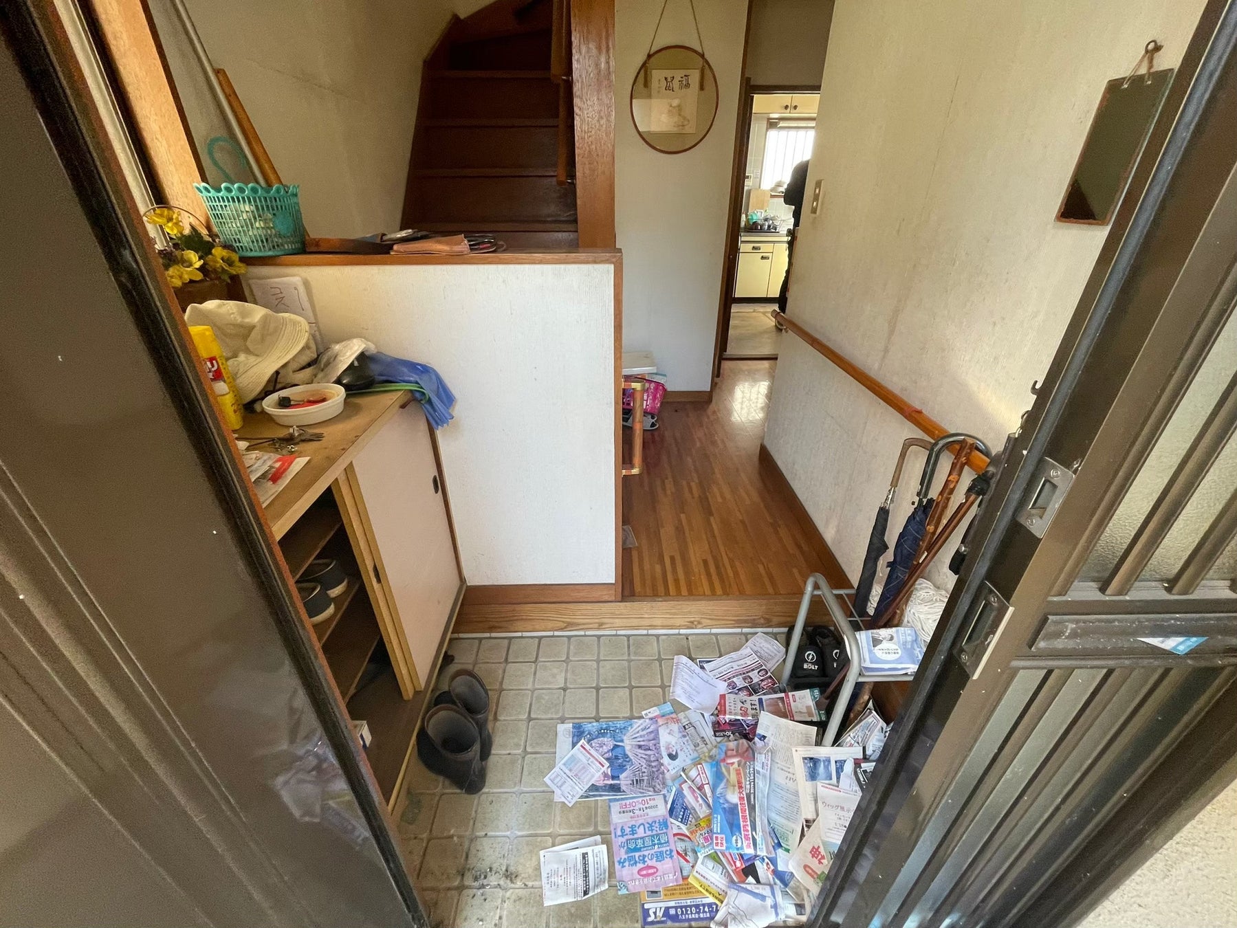 長年放置され、室内外にゴミが散乱・堆積。建物の損傷も激しく、通常の空き家であれば500万円程度の価値が見込まれましたが、ゴミ屋敷の状態であったため買取価格は300万円となりました。周辺の景観を損ね、衛生・防災面でも懸念がある状態でした。