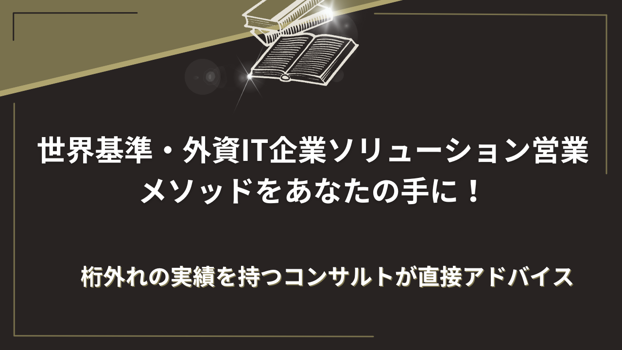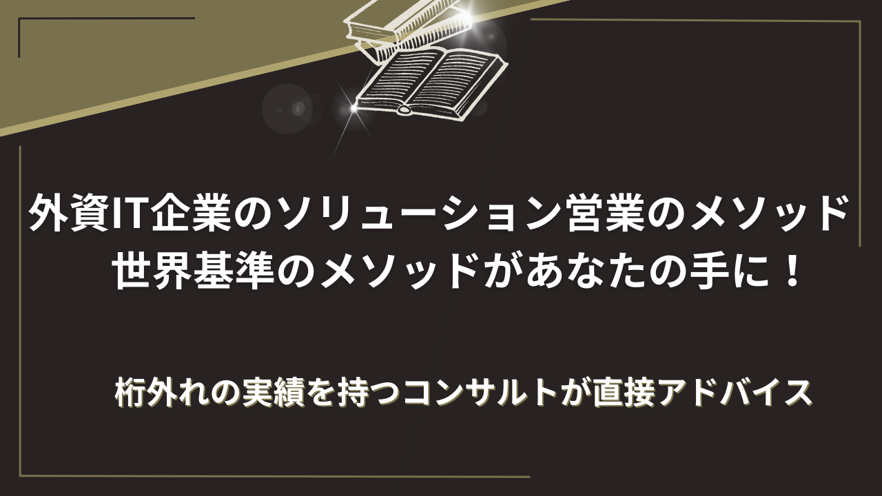 日本には世界で戦える良い製品やサービスが無数に存在します。マーケティングにより集客には成功しているものの、営業パーソンの能力不足により、成約に結びつけられないという課題を多くの経営者が持っています。特に業績を伸ばしたい企業においては、エンタープライズ・大企業向けの提案活動に苦戦を強いられています。中小企業・SMBで成功していた営業手法はエンタープライズ・大企業向けでは嫌煙されることに気づかないことが大きな原因となっています。そのため、外資系IT企業でソリューション営業として25年成果をあげてきた経験をメソッド化しました。