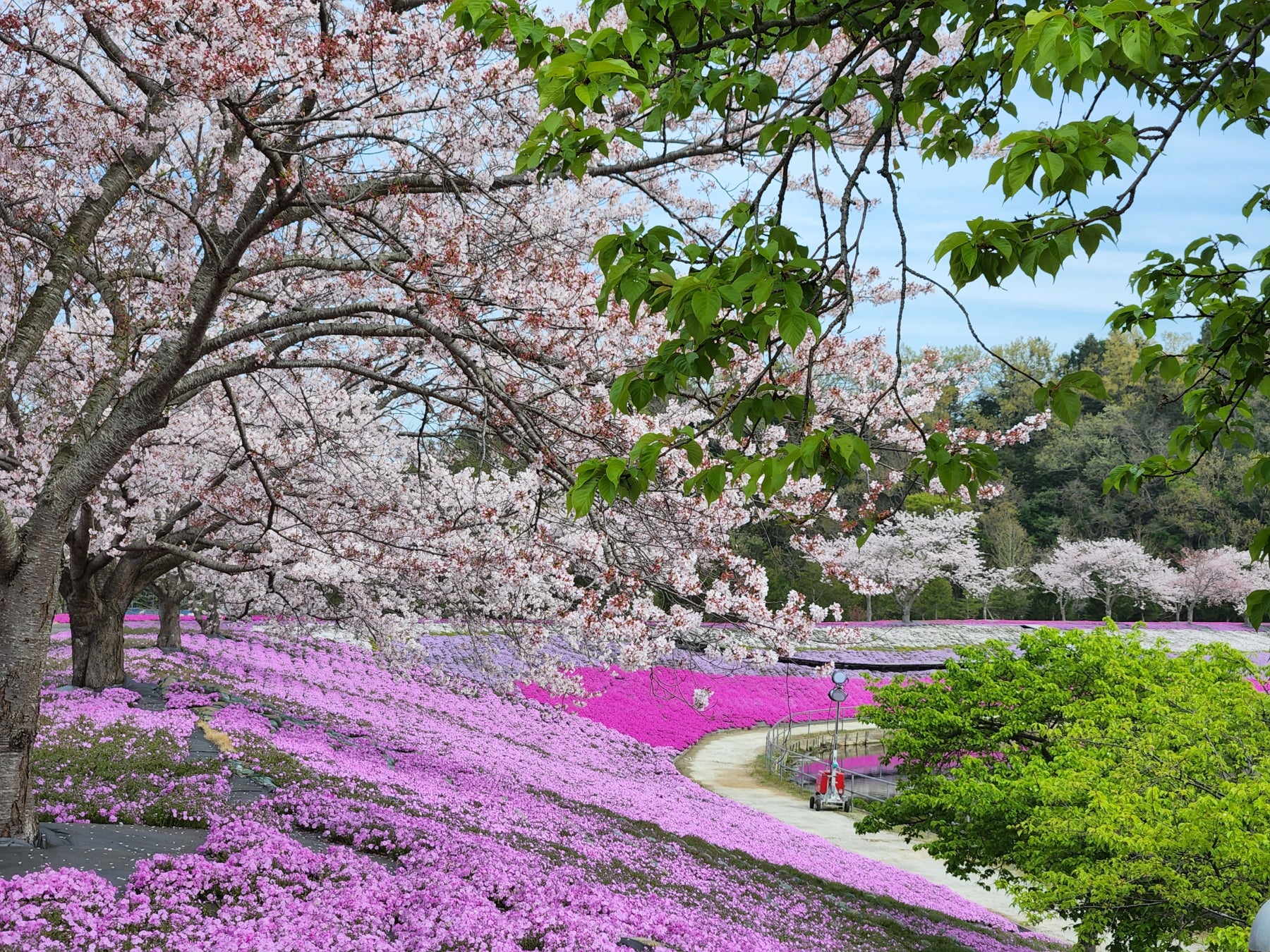 東京ドイツ村では、現在「芝桜」が見頃を迎えております。ボート池近くの遊歩道沿いに、
