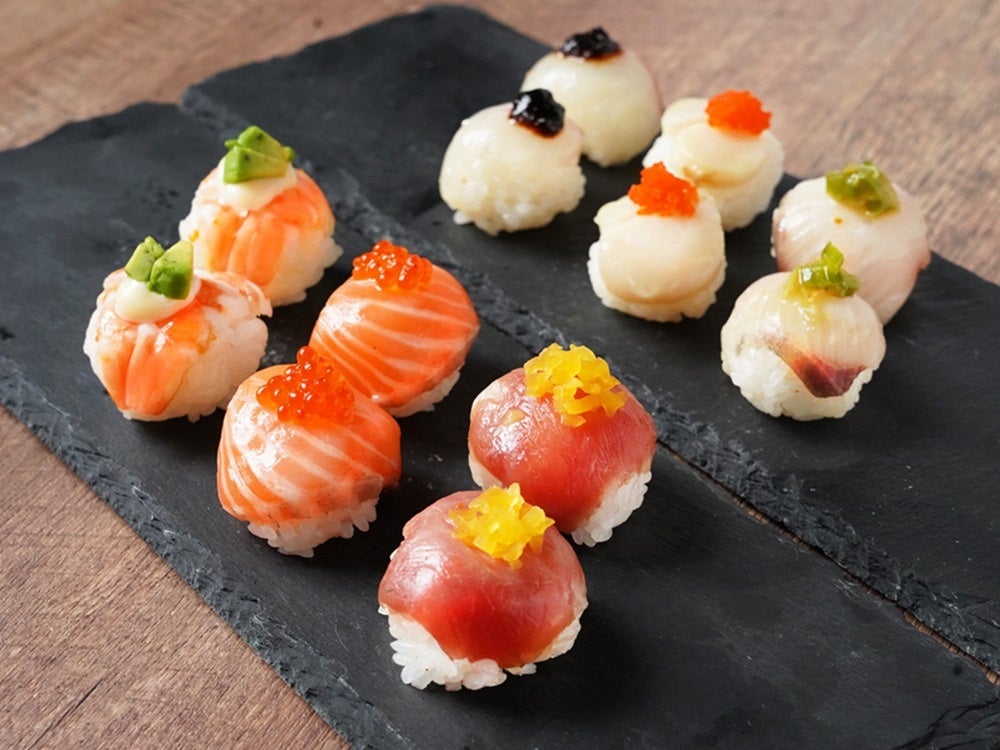 素材本来の味わいを最大限に引き出した炉ばた焼や、彩り豊かでトレンド感あふれる創作鮨の数々、季節の旬をふんだんに味わえる盛り合わせ、そして軽やかに楽しめるカリフォルニアスタイルのお鮨まで、多彩なメニューをご用意。