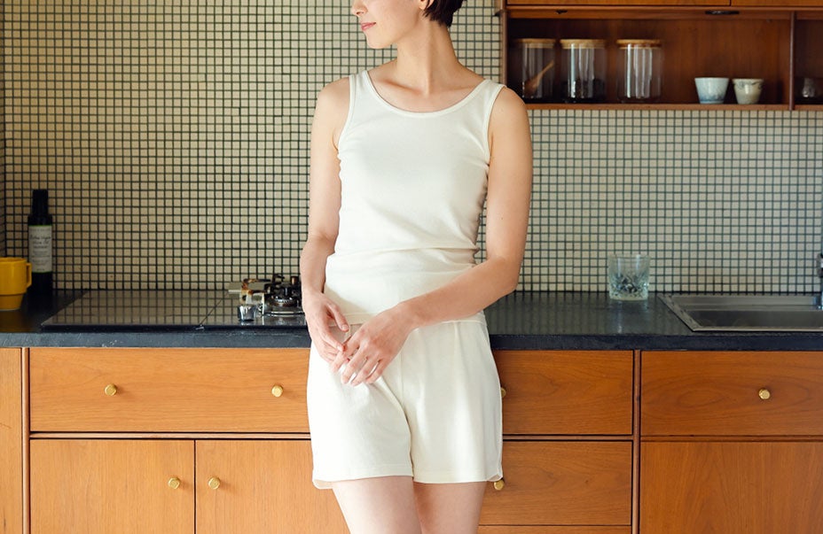 天然素材100%でありながら高い機能性を誇る、唯一無二の生地で作られるインナーウェアは、今も変わらず国内で製造。