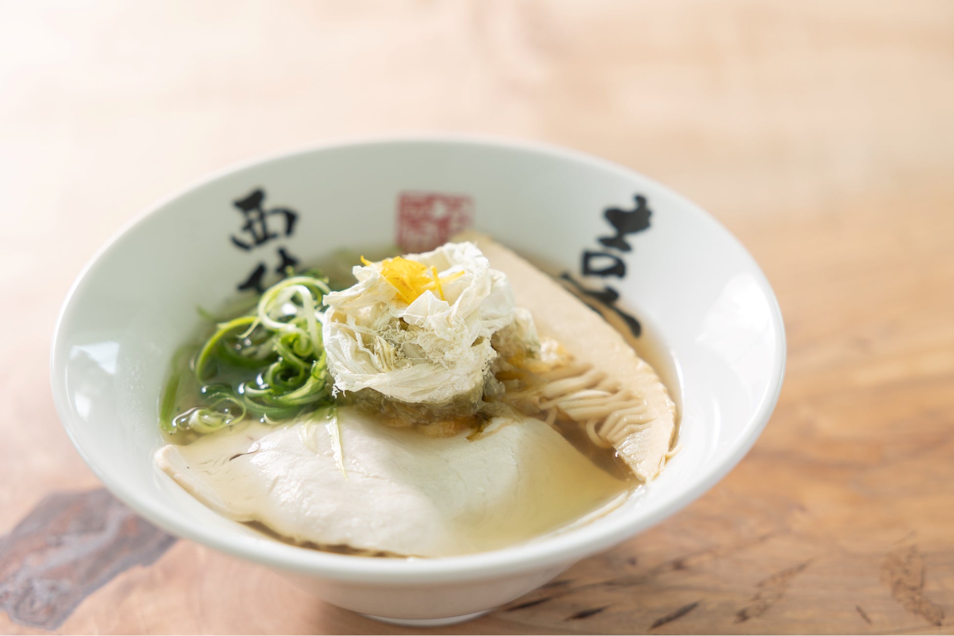 このスープは、当店の店主と親交のあったミシュラン一つ星「銀座八五」の松村氏からノウハウを学び、松村氏はじめ、らぁ麺とうひちの袖岡氏、京都ブライトンホテル料理長の西氏に監修をうけて完成度を高めた自信作です。