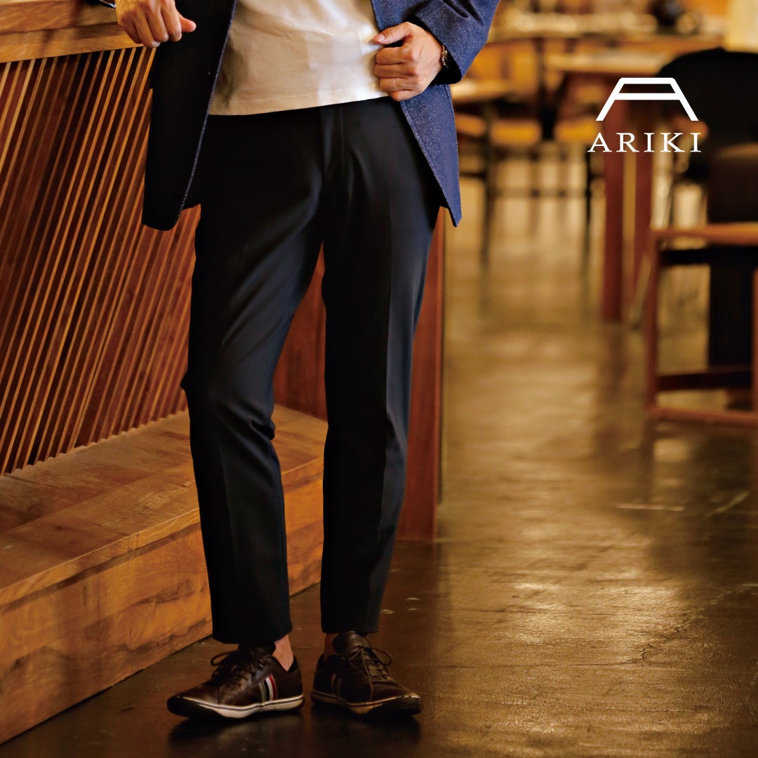 婦人用ファッションパンツメーカーARIKIが長年培ってきたノウハウを活かし、純日本製の最高の素材と最高の技術で、機能性とデザイン性を兼ね備えた「ARIKIメンズパンツ」をつくり上げました。