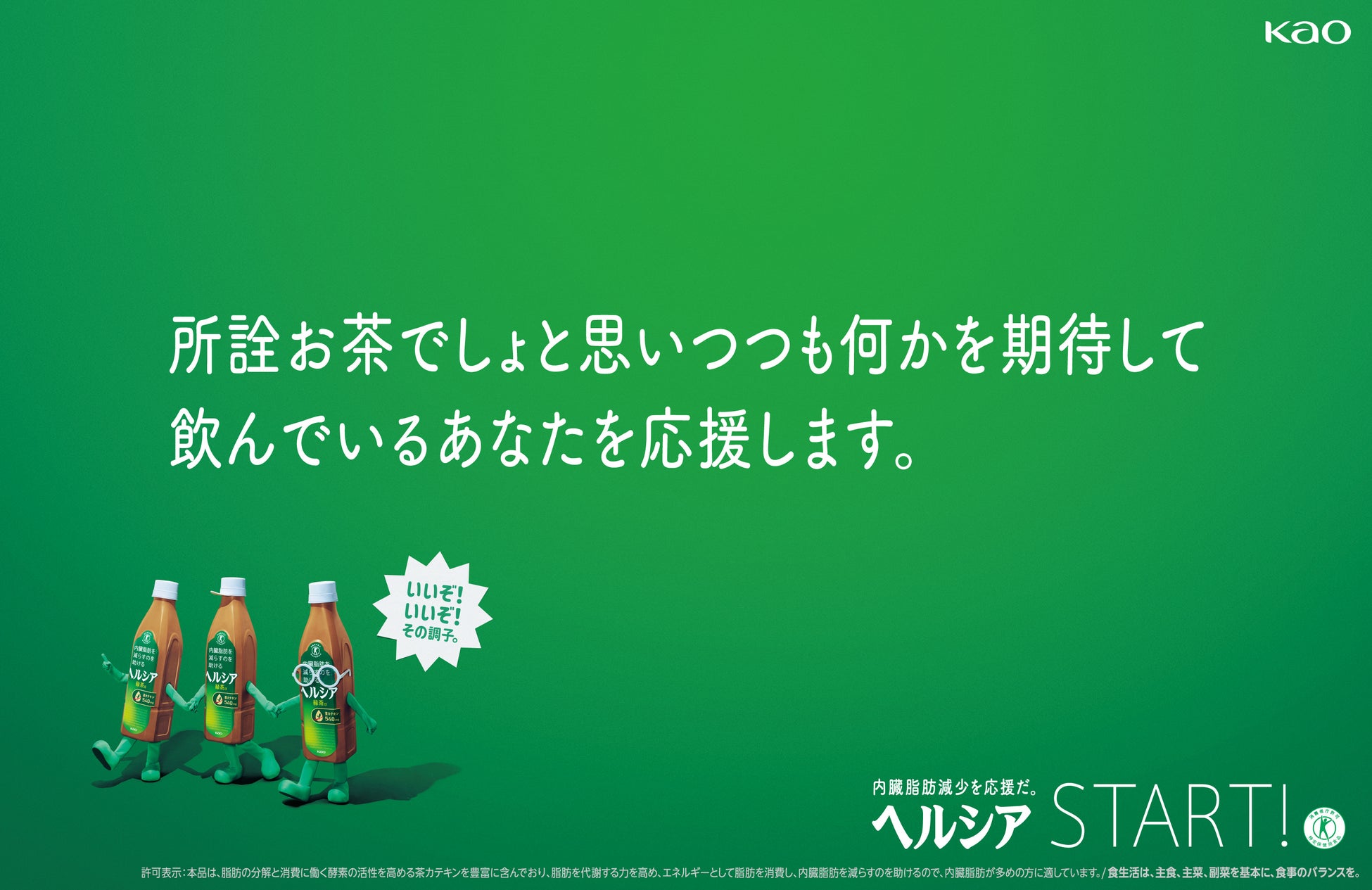 ヘルシア緑茶は、体脂肪減少を助けるお茶として2003年に発売が開始しました。以来20年間にわたって、名前の由来である“ヘルシーをアシストする”の通り、「ヘルシア」は内臓脂肪をはじめとした健康の悩みに対して、多くの方をサポートしてきました。これまで機能性への着目によりストイックなイメージが強かったヘルシアですが、発売20周年を機に、パッケージの大幅刷新に加え、より日常の健康習慣に「寄り添い」「応援する」存在へとシフトするコミュニケーションをスタートしていきます。