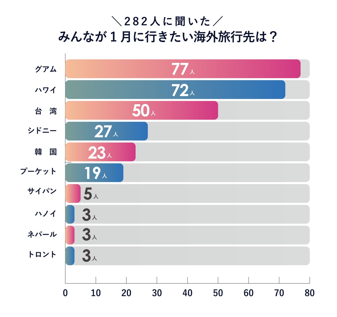 この結果から、グアムが最も人気の旅行先であることが明らかになりました。