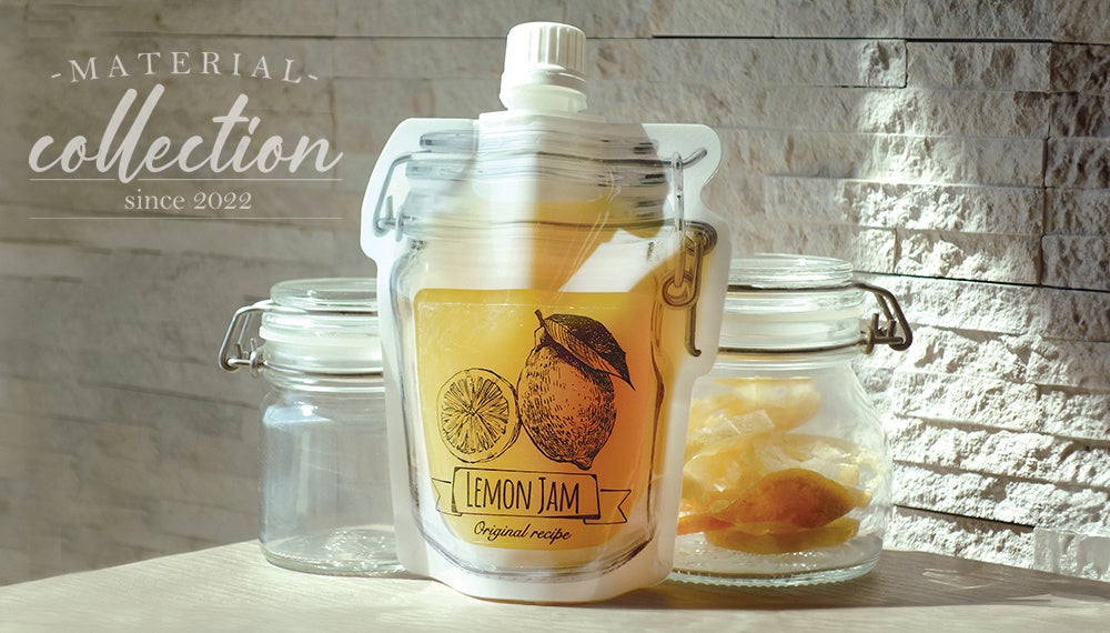 ガラスびん風デザインの印刷が印象的なシールアップパウチは、お客様から「かわいい」「おしゃれ」とご好評いただいております。