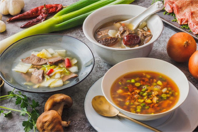 ボーンブロスという骨付き肉と野菜をじっくり煮込んだ旨味と滋養たっぷりのスープをベースに、添加物不使用でかつ塩分控えめながらも、らーめん等のような満足度の高い美味しい食事を目指して開発しました。高栄養かつコラーゲンたっぷりなので、健康や美容に気をかけている方にも嬉しい「飲みほす喜び」を感じながら健康へ向かえる「ギルティフリーのご馳走スープ」です。