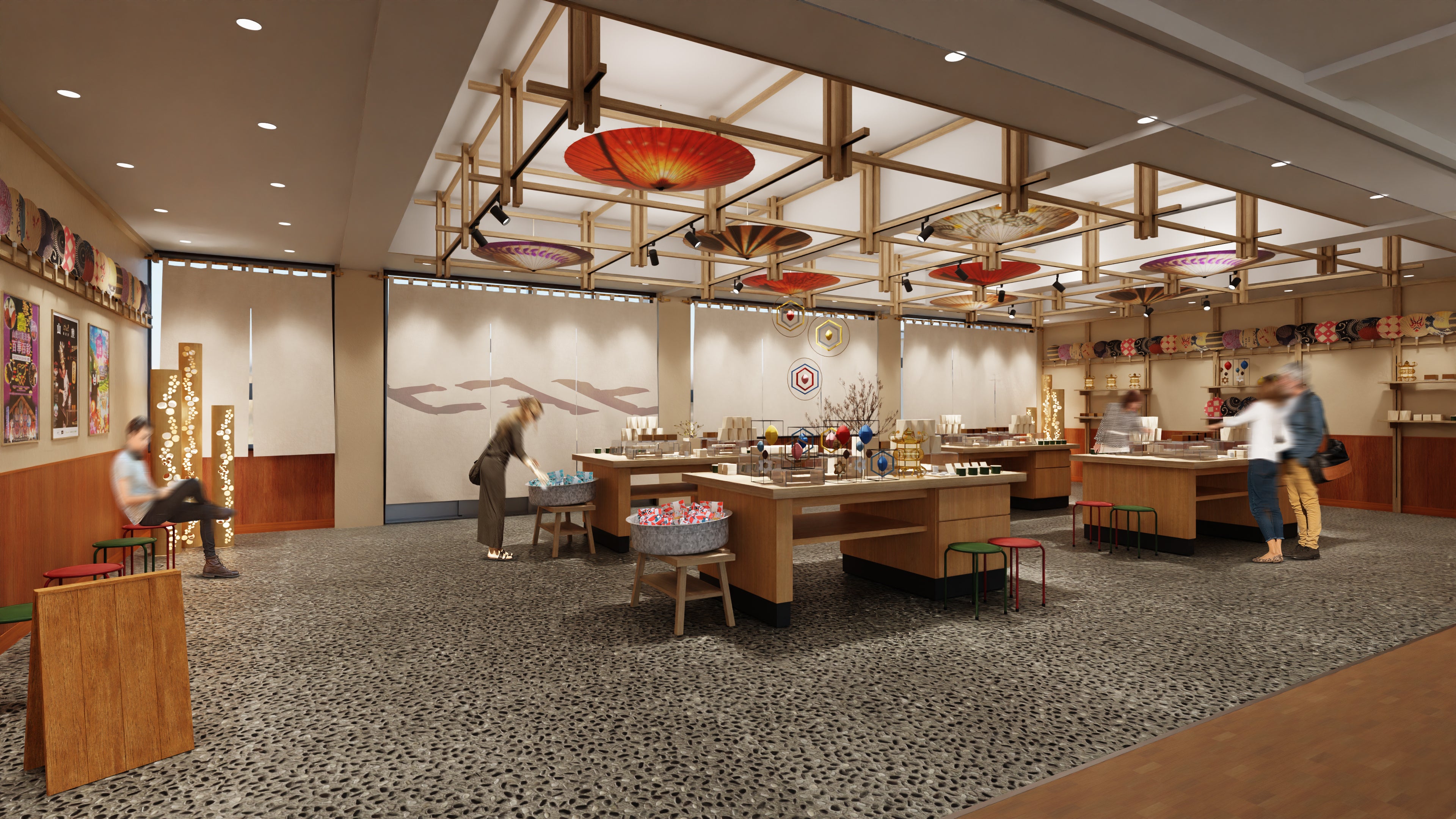 歴史ある山鹿温泉や古墳、地域に根差す伝統工芸品やワインなど、山鹿市を象徴する名所や名産をそのままデザインのテーマとすることで「この場所でしか味わえない」価値を提供したいと設計しています。やまがBASEのロゴは六角形をモチーフに作られていますが、自然や街並み、産業や文化など、あらゆる価値観を尊重し、共創することで、さまざまな化学反応を起こし、点から線へ、線から面へと無限に広がり、あらゆる取組の基盤となる施設を創造していきます。