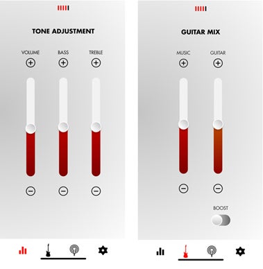 何時でも何処でも自分の好きな音楽をかけながらギターやベースを弾く事ができ、新規開発された専用アプリで音楽とギター/ベースの音量を個別に設定可能ですので、練習用としても最適です。