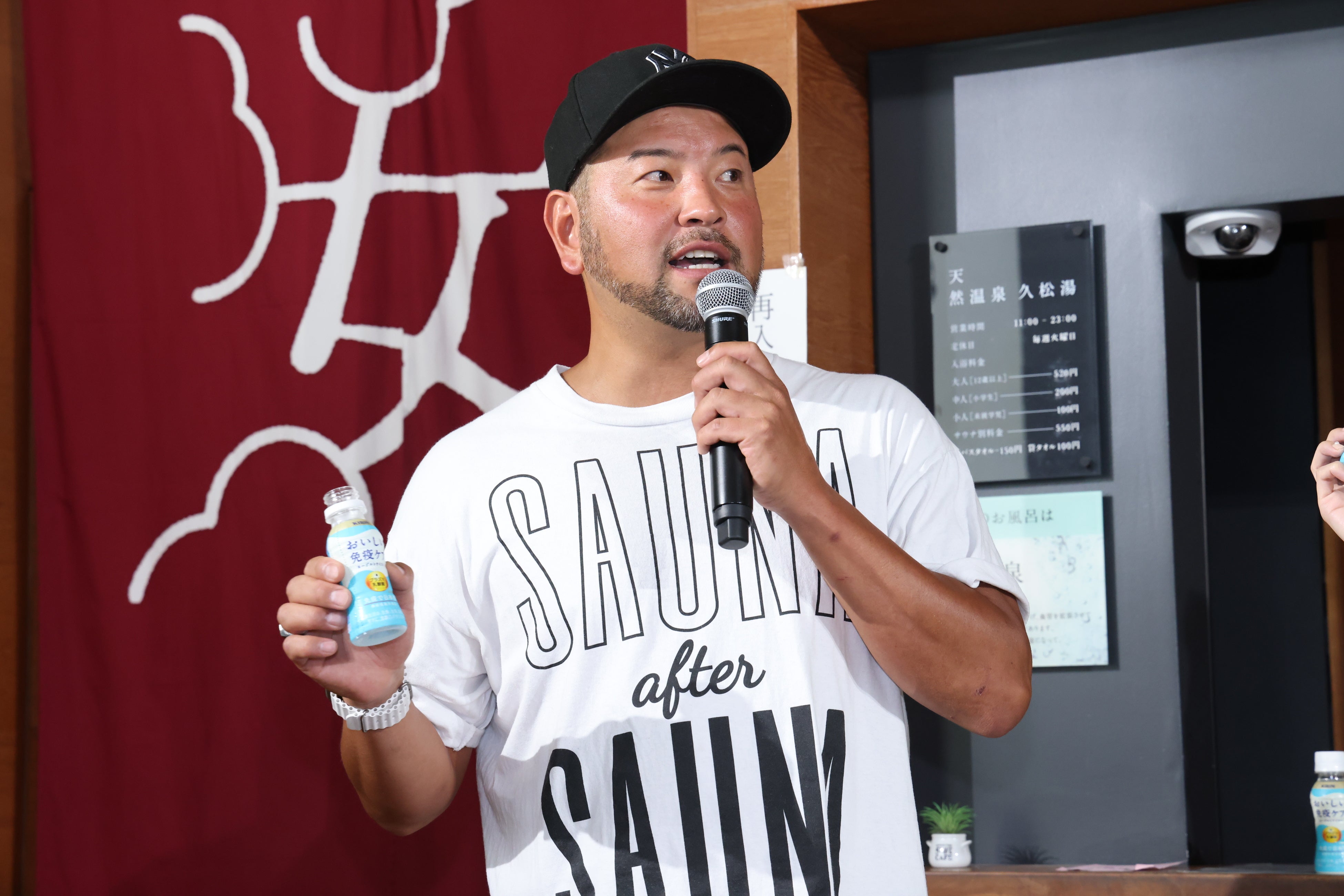 クロージングでは、サウナ師匠(秋山大輔さん)は「サウナ・水風呂・外気浴に加えて、免疫ケアが4つ目のととのうカテゴリーになればと思います」、須田さんは「裸足でカメラの前に立つのが今までない銭湯という非日常空間で、『おいしい免疫ケア』と『銭湯・サウナ』のお話ができて楽しかったです」とコメントし、トークイベントを締め括りました。