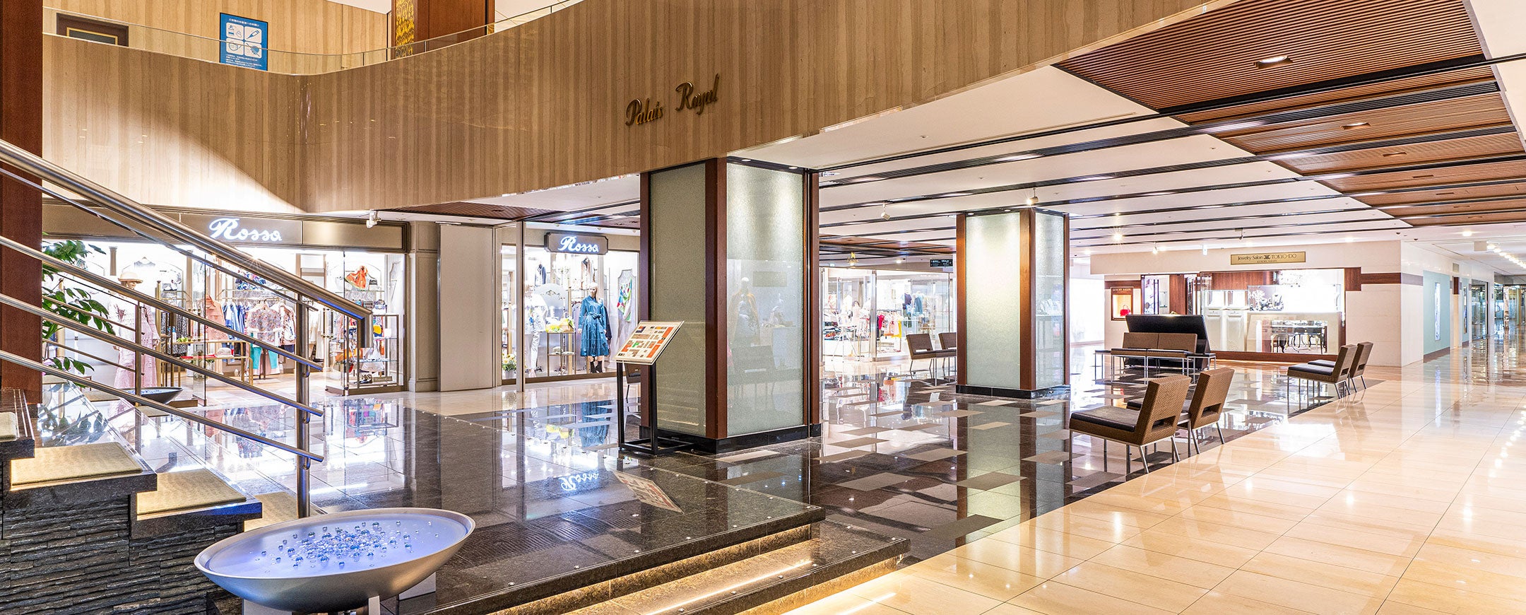 昭和48年(1973)の新館完成時には“ホテルの中に街を!”のコンセプトから、欧米の一流ブランドを集めたショッピングゾーンへと生まれ変わり、パリのPalais Royal(パレロワイヤル)にちなんで「パレロイヤル」と名付けられました。