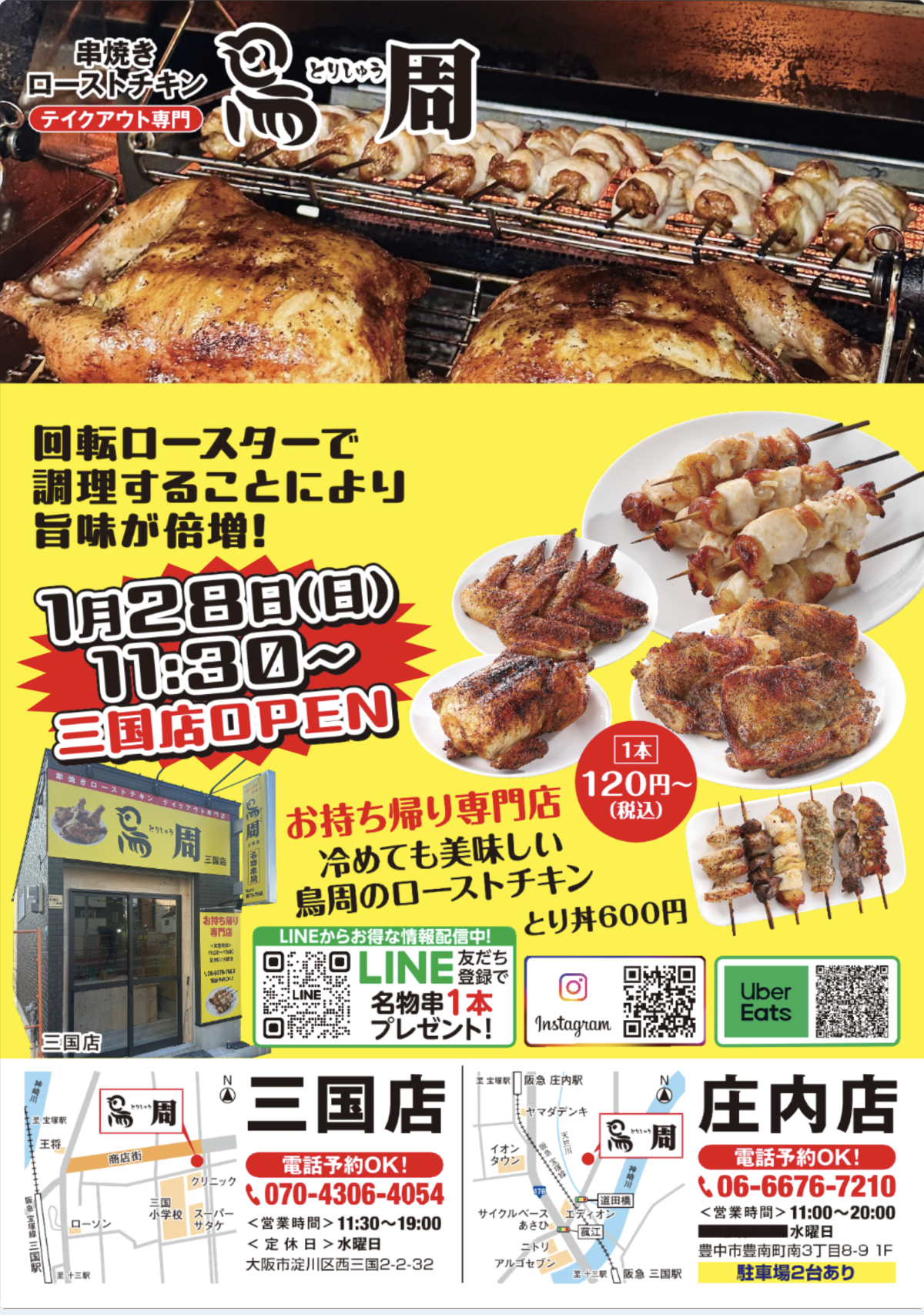 【早くも関西2店舗目】串焼きローストチキンのテイクアウト専門店『鳥周』が昨年7月オープンの庄内店に続き、関西2店舗目の『鳥周 三国店』をオープン!