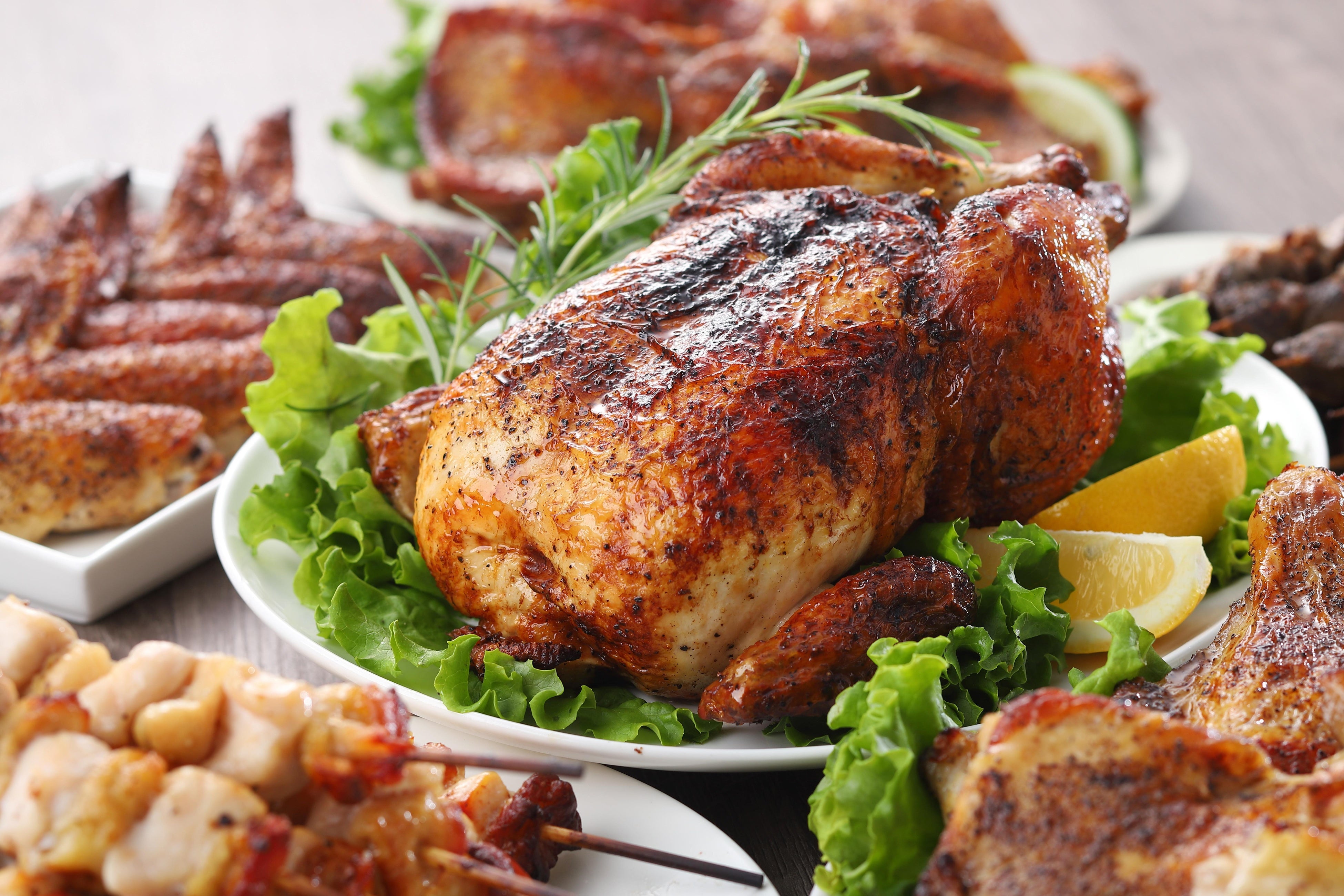 ロティサリーオーブン(回転ロースター)で焼かれた鶏は余分な脂を落としながら、また下で脂を受けることで脂の旨味が凝縮され、シンプルな味付けながら味わい深く焼き上がります。