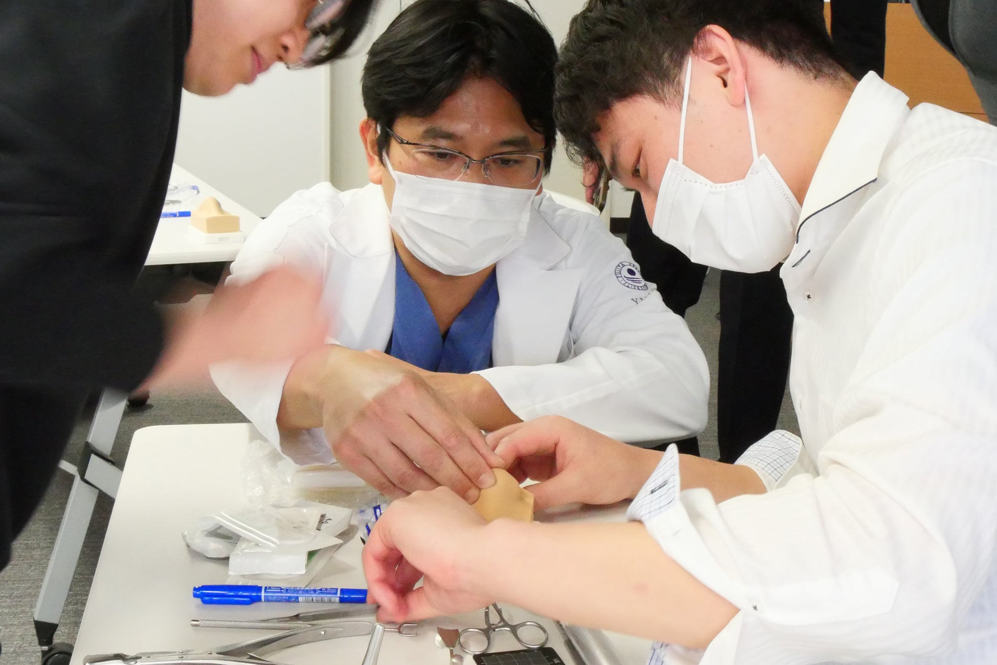 参加した16名の形成外科医に、藤田医科大学形成外科の准教授であり、ザ・プラス美容外科の統括指導医である井上義一医師と、ザ・プラス美容外科の名古屋院統括医師である犬飼麻妃医師がジョン医師と共に指導しました。