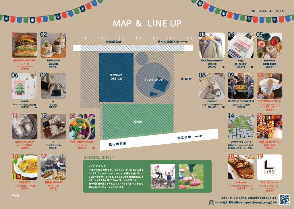 今回はスペシャルゲストとして、子育て世帯に大人気の「ハダシランド」を山口県から招きます。ハダシランドは、固定の場所を持たないプレイパーク。移動式遊具を設営し、子どもたちが自主的に遊び、自由に過ごせる空間がインフラスタンドに出現します。ぜひ、ご家族で「KAWAYA市」にお越しください。