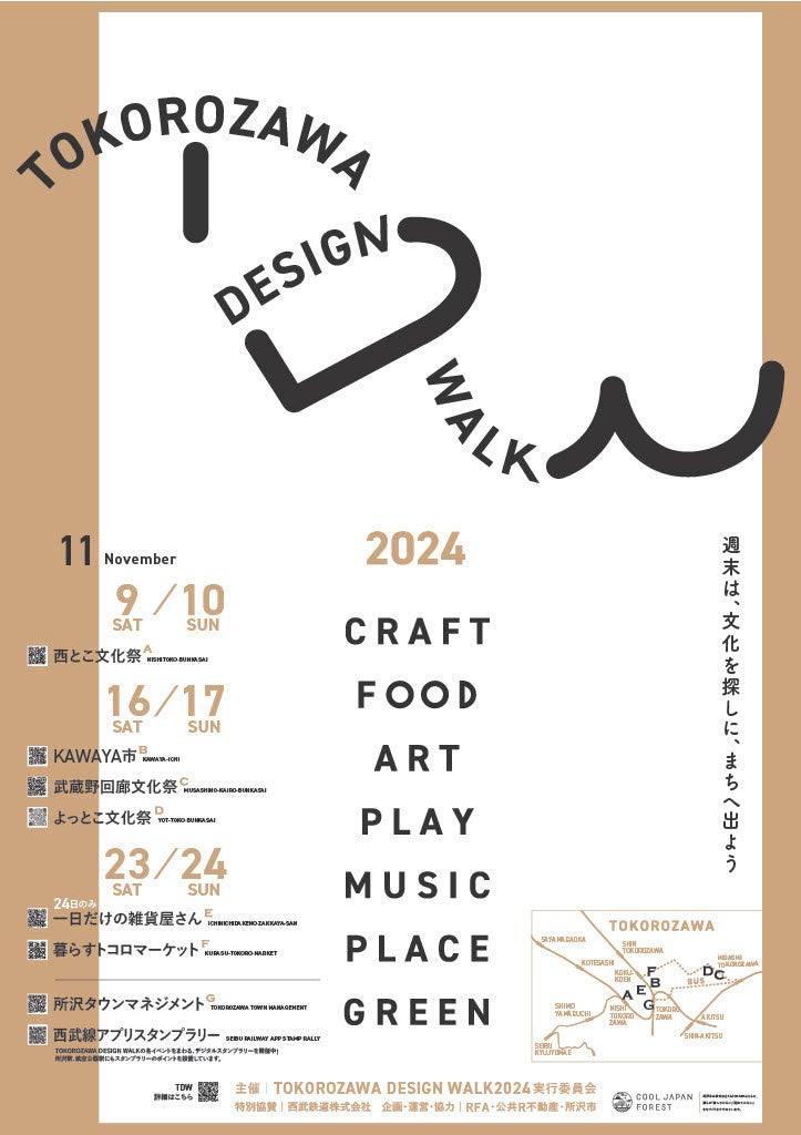 「TOKOROZAWA DESIGN WALK」は、所沢のアートやクラフト、カルチャーの魅力を多角的に掘り起こし、地域社会と一体となった文化体験の提供を目的としたエリア回遊プログラムです。