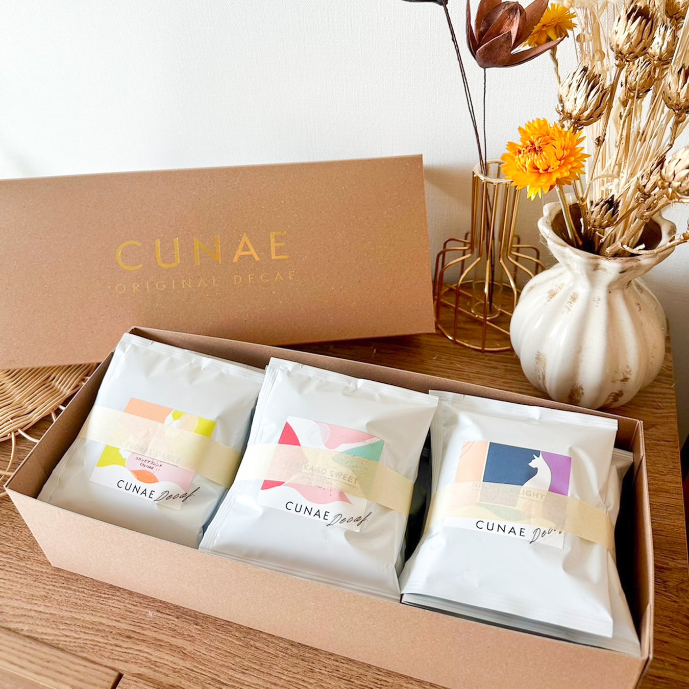 デカフェブランド「CUNAE(クーネ)」は”日常に、デカフェを”をコンセプトとしたライフスタイルデカフェを展開中。今季より朝/昼/夜の3つのシーンで使い分けられる3種類のフレーバーを販売している。今月からギフト商品「クーネデカフェギフト」の販売を開始した。