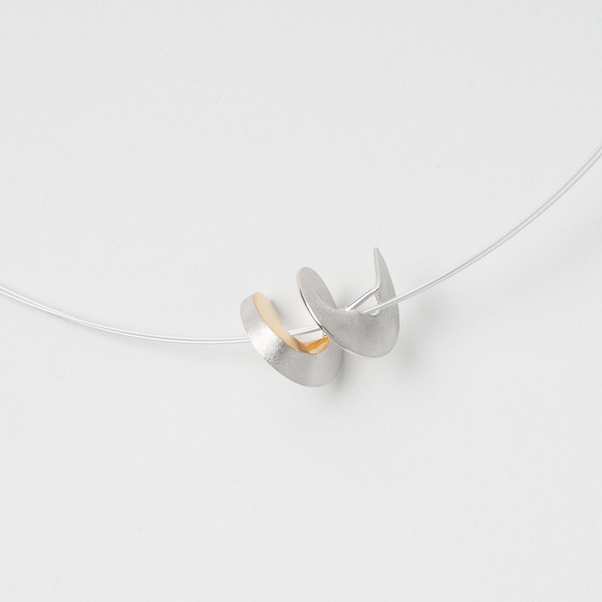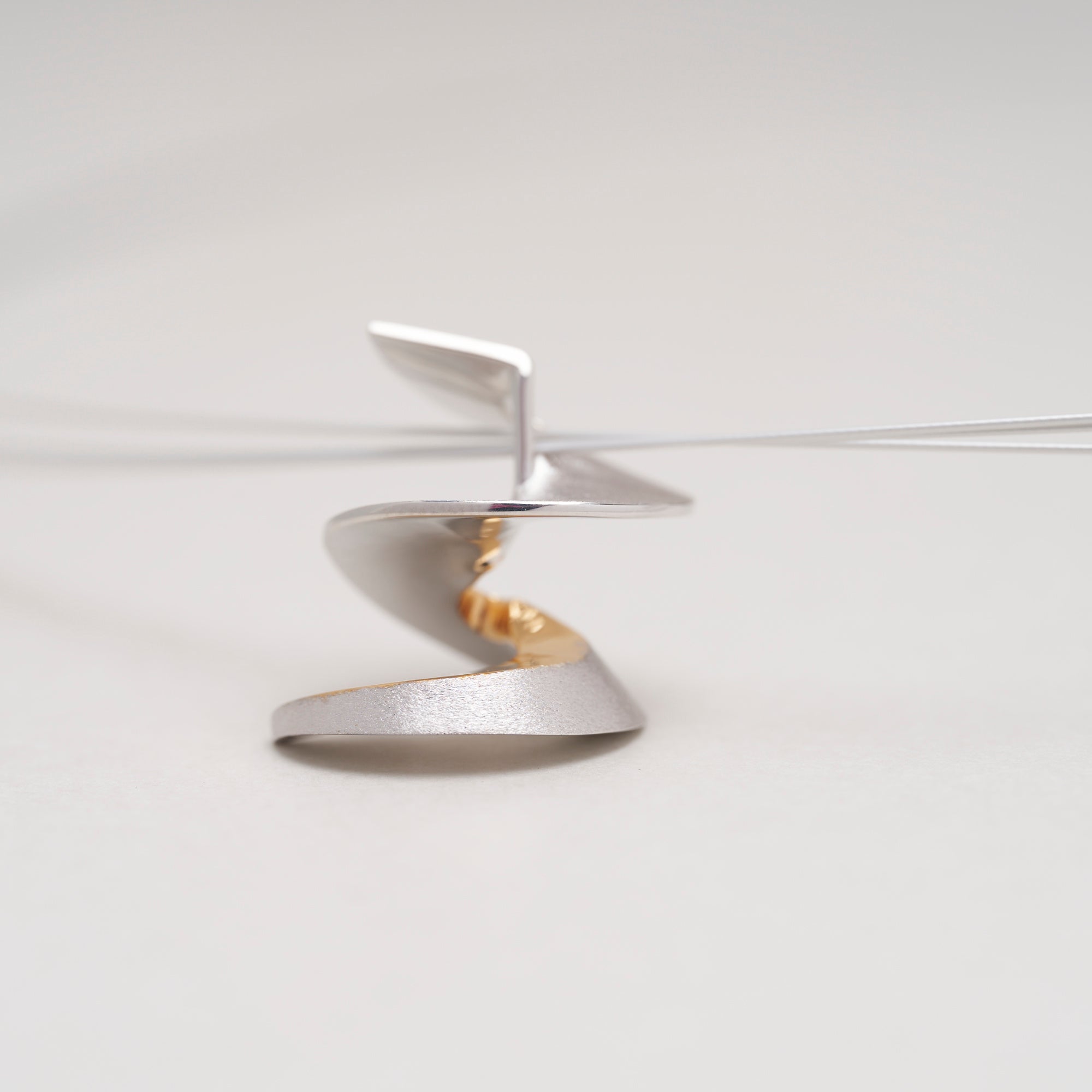 対になるかたちが、組み合わさってつながるペンダントや、まわるらせん状のかたちなど。