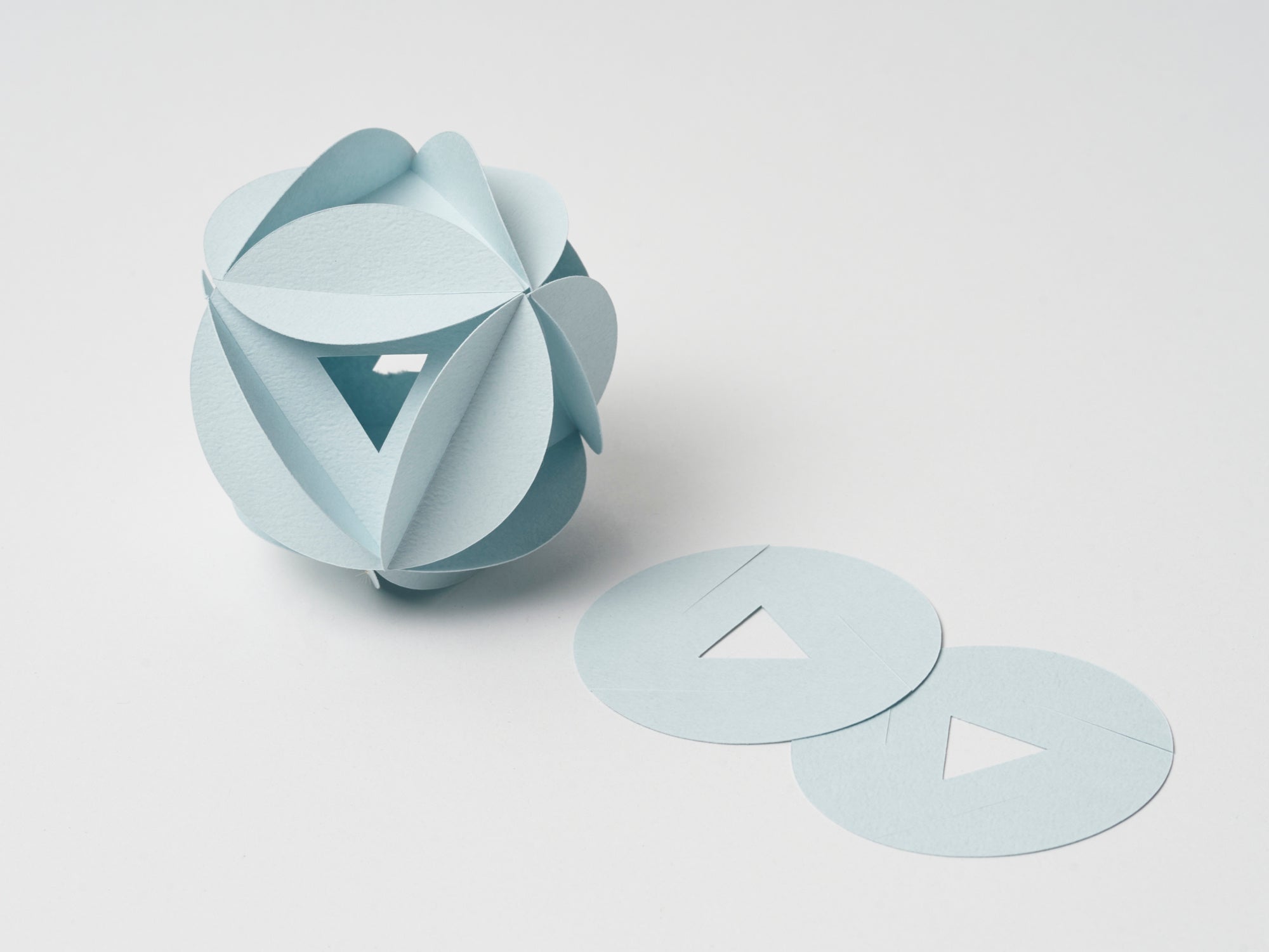 そして、毎回好評のご来場者プレゼント「紙工作セット」は、今回発表するLog[ログ] θシータのかたちを組合せてつくる紙立体をデザイン。