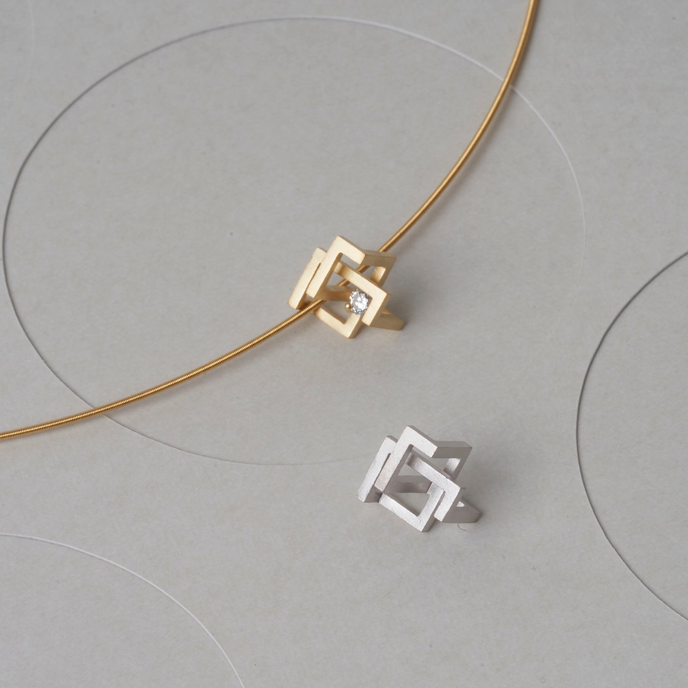 幾何学的なかたちを楽しむシンプルなペンダント。