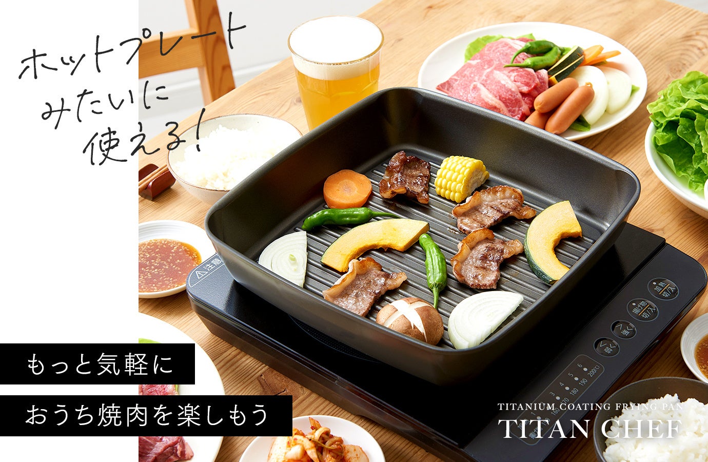 後片付けの手間を解決!魚焼きグリルとホットプレートが融合した「チタンシェフ脱着ハンドル式フライパン スクエアパン」がMakuake(マクアケ)にて先行発売中!