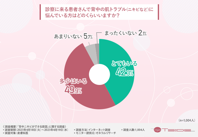 【皮膚科医1,004人に調査】背中の肌トラブルに悩む患者は多く、4割以上が『とてもいる』と回答!原因やおすすめのケアとは