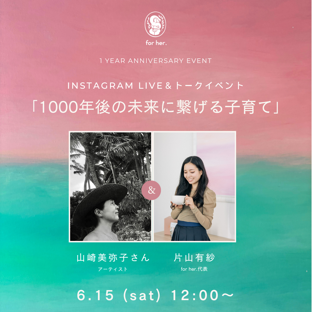 ハワイの小さな離島在住のアーティスト山崎美弥子さんとfor her.代表の片山有紗が、自身の子育て経験について語ります。ハワイの離島と東京・恵比寿のオフィスをZOOMで繋ぎ、その様子を「for her.」のインスタライブでも配信します。