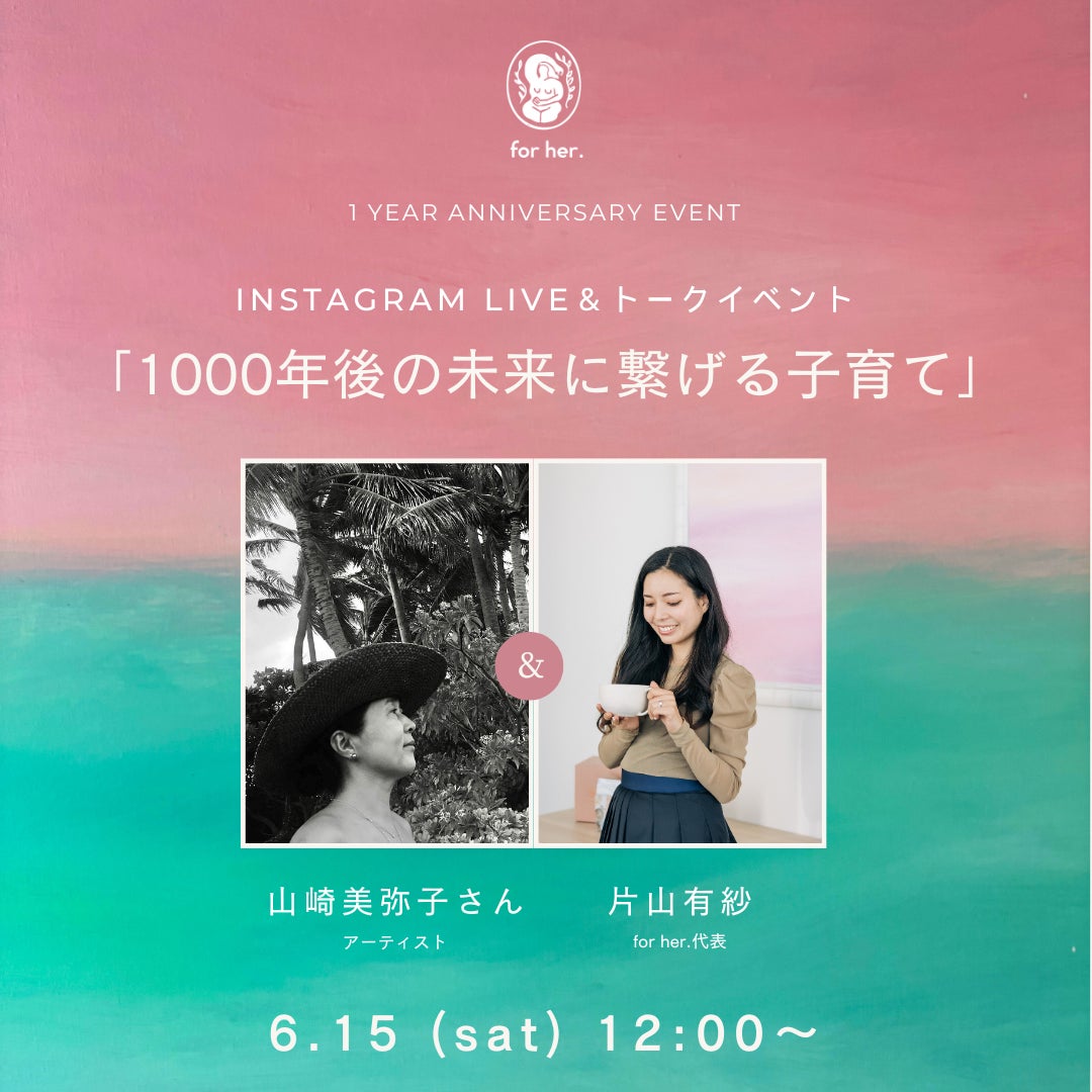 片山ホールディングス株式会社の傘下である、Katayama New Business Corporation 株式会社(以下「KNBC(株)」)は、人々のwellbeingへの貢献を目指し、新たなビジネス領域に挑戦するため産後ケアブランド「for her.」を2023年5月に発表しました。この度1周年を迎えるにあたり、「1000年後の未来に繋げる子育て」をテーマに、特別ゲストとしてハワイの小さな離島在住のアーティスト山崎美弥子さんをオンラインにてゲストに迎え、for her.創業者の片山有紗(かたやまありさ)と共にトークショーを行います。さらに、インスタライブ配信や特別座談会も予定しています。