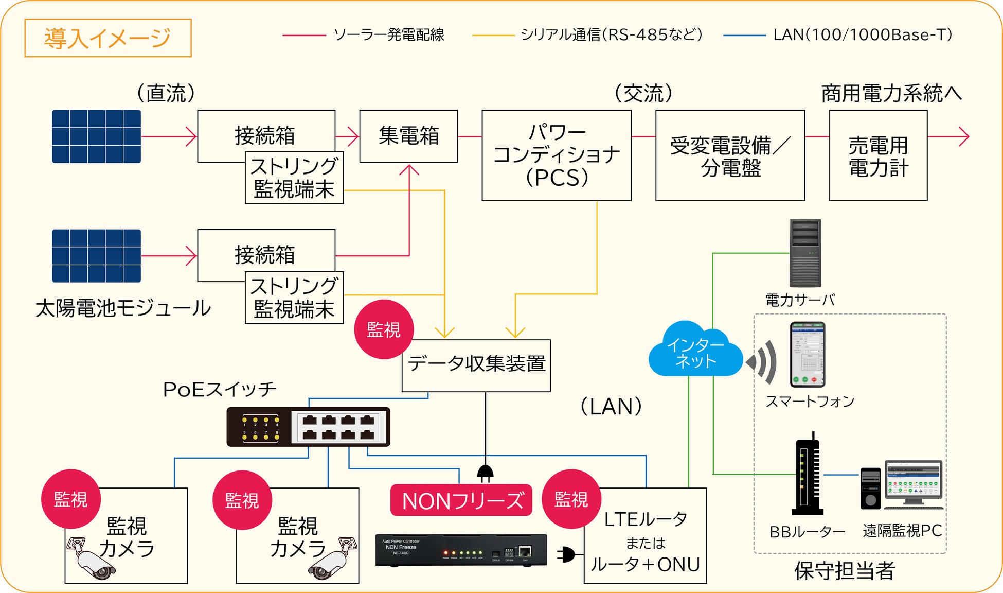 バリューソリューション株式会社(本社:神奈川県川崎市 代表取締役:日野利信)は、ネットワーク機器トラブルで多額な機会損失が発生するなど、近年ネットワークの安定稼働が重要視されている太陽光発電事業の業界が抱えるネットワークトラブルを根絶すべく、ネットワーク機器の死活監視を行い フリーズ発生時に自動復旧させることで定評のある死活監視自動リブート装置「NONフリーズ」のより一層の拡販・提案活動を推進いたします。