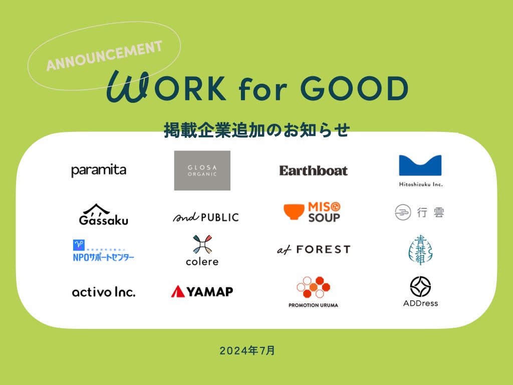 「働く」で社会を変える求人サイト「WORK for GOOD」、新たに16社を掲載!