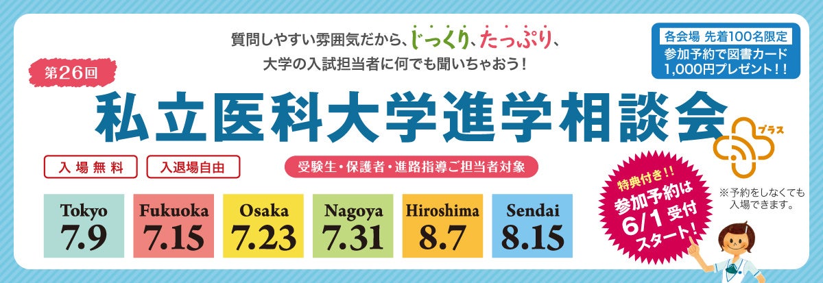 東京・名古屋・大阪・広島・福岡・仙台で2024年度「私立医学部受験」“最新情報”をお届け!