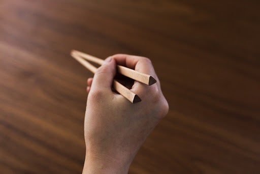 お箸を手に取ってもらうと分かりますが、実はお箸を持つ際、お箸と手が接する面は「三面」しかないんです。