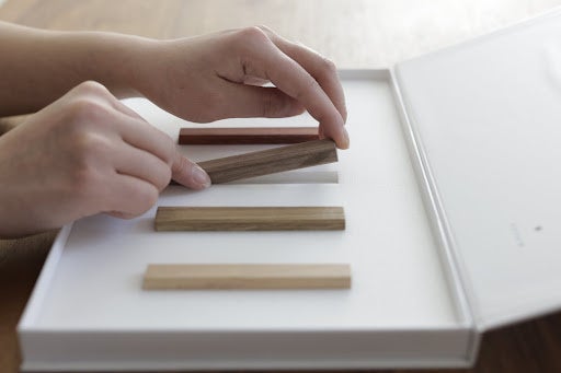 「香り」「質感」「色味」「重さ」からお気に入りの木材を選べる設計になっています。