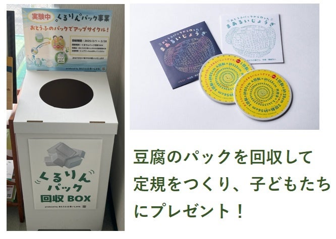 - 豆腐パックは(株)おとうふ工房いしかわ(愛知県高浜市)が展開するくるりんパック事業で再利用へ