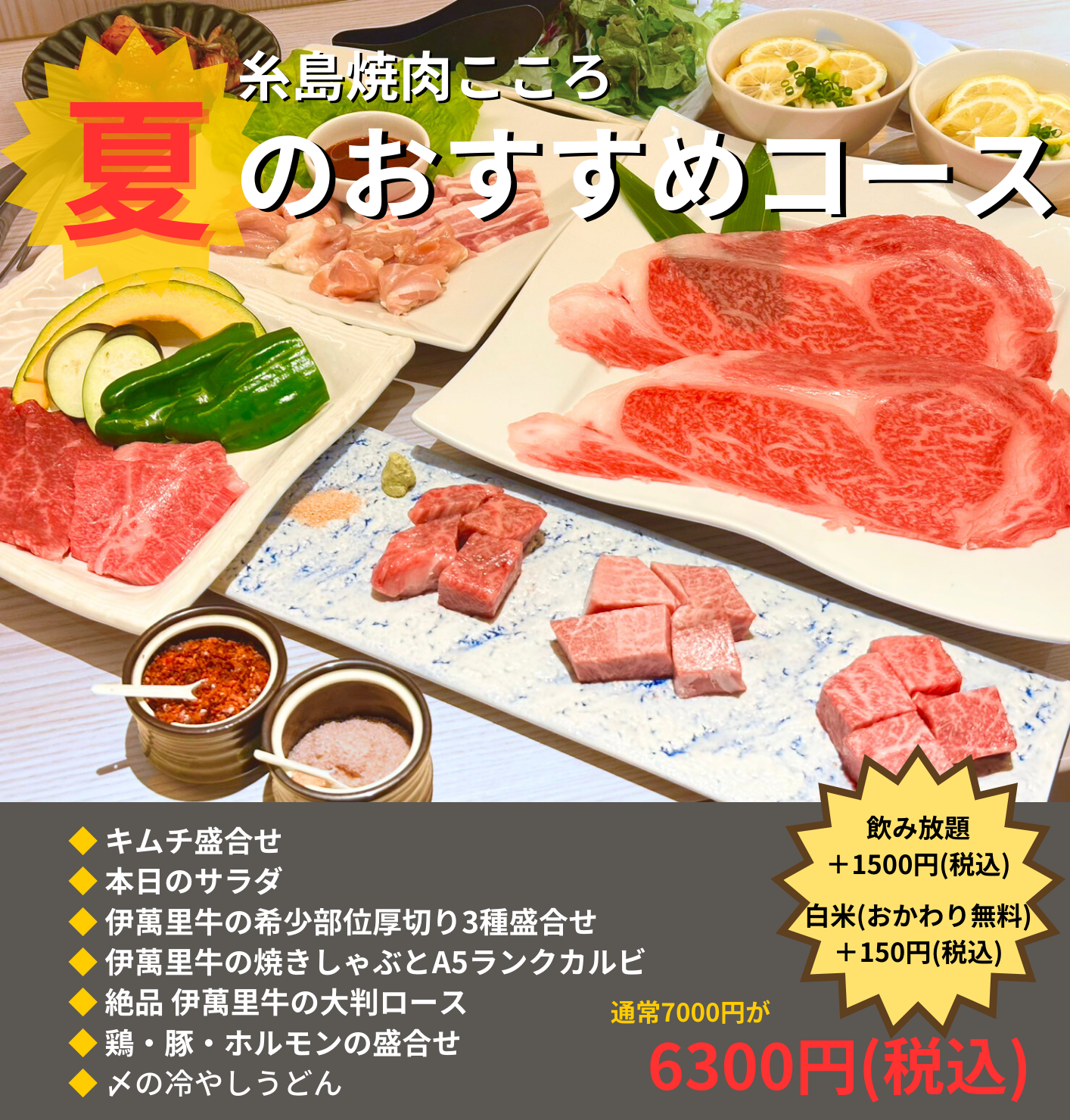 福岡市西区の焼肉店”糸島焼肉こころ”で【夏限定コース】が新登場!さらに夏休みはお子様無料!