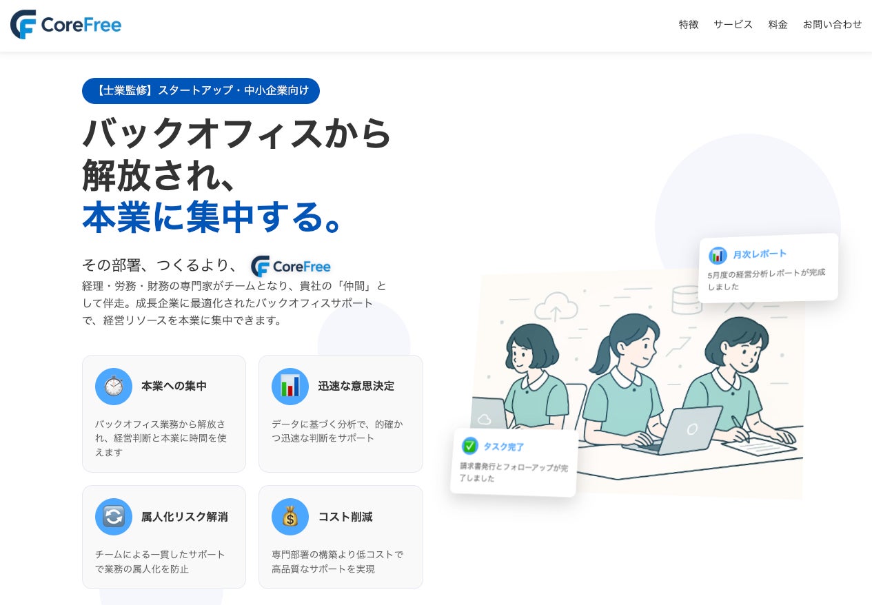 事業内容:バックオフィス業務支援サービス「CoreFree」の提供
