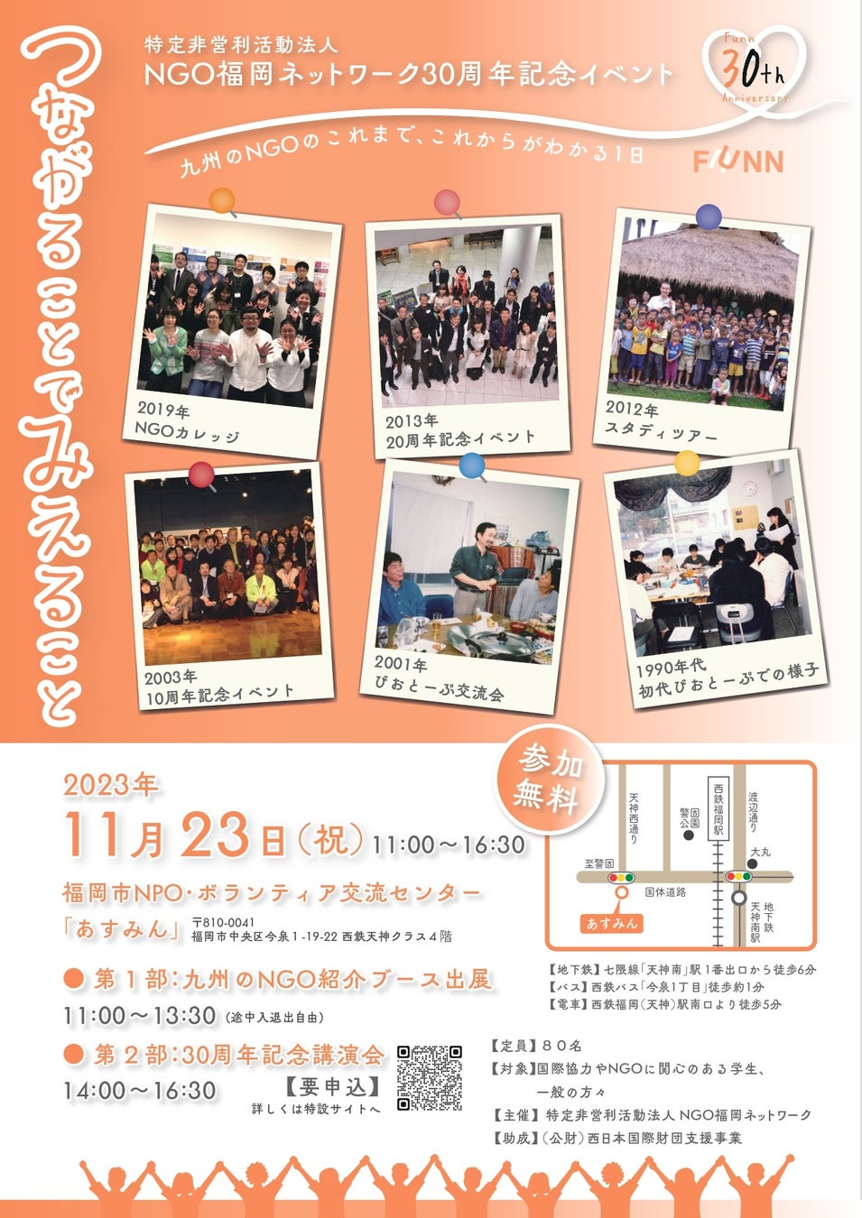 NGO福岡ネットワーク創立30周年記念イベント「つながることでみえること」2023年11月23日に福岡市あすみんで開催(入場無料)