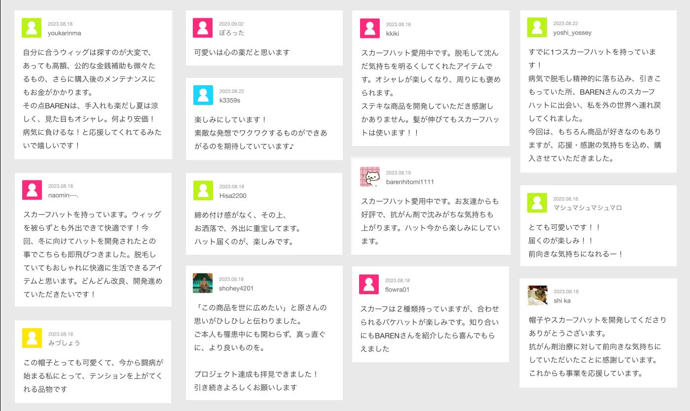 「可愛いは心の薬」「病気に負けるなと応援してくれてるみたいで嬉しい!」「抗がん剤治療に対して前向きな気持ちにしていただいたことに感謝」「闘病が始まる私にとって、テンションを上げてくれる」など、多くのコメントにBARENも勇気づけられ、背中を押して頂いています。