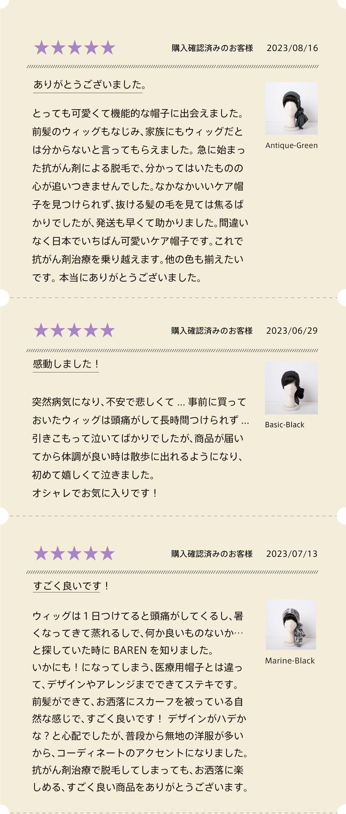 BARENは「ものづくりに妥協はしない、理想のヘアロスケア製品を追い求める」という強い想いを持ち、これからも闘病中の女性に寄り添った商品を開発していきます。