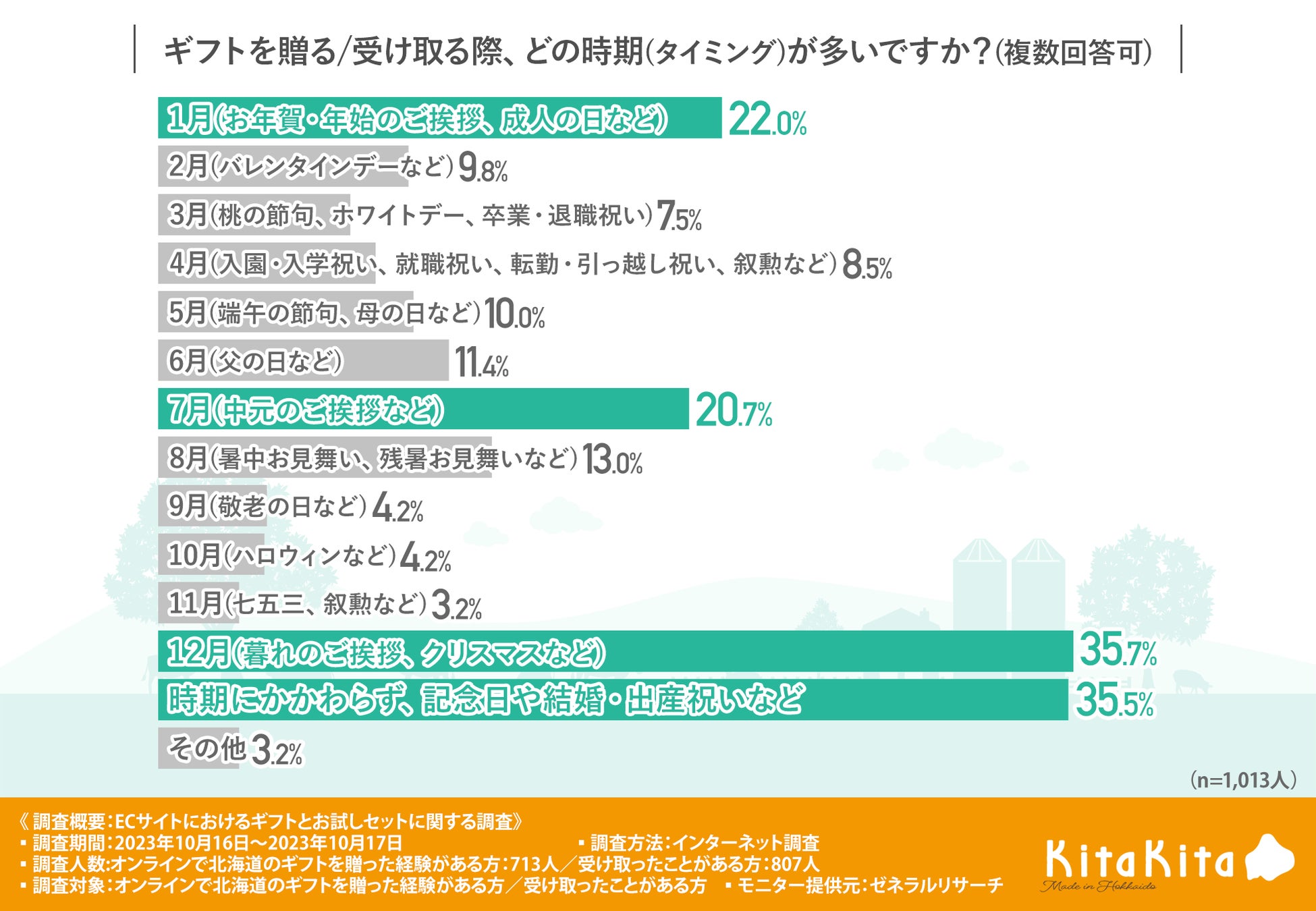 【調査人数】オンラインで北海道のギフトを贈った経験がある方:713人/受け取ったことがある方:807人
