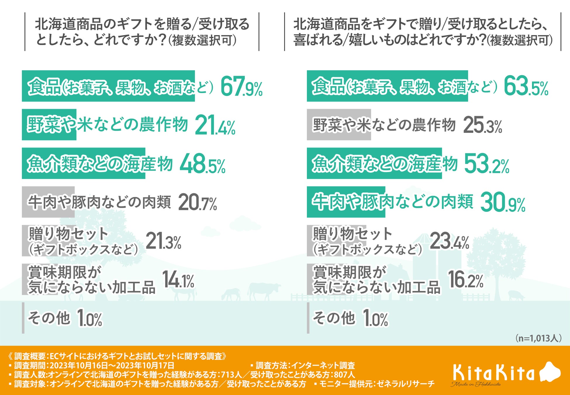 そこで今回、北海道ギフトのオンラインショップ「きたきた」(https://kitakita-hokkaido.com/)を運営する株式会社allは、オンラインで北海道のギフトを贈った経験がある方/受け取ったことがある方を対象に「北海道ギフトの贈りたいもの・欲しいもの」について調査しました。