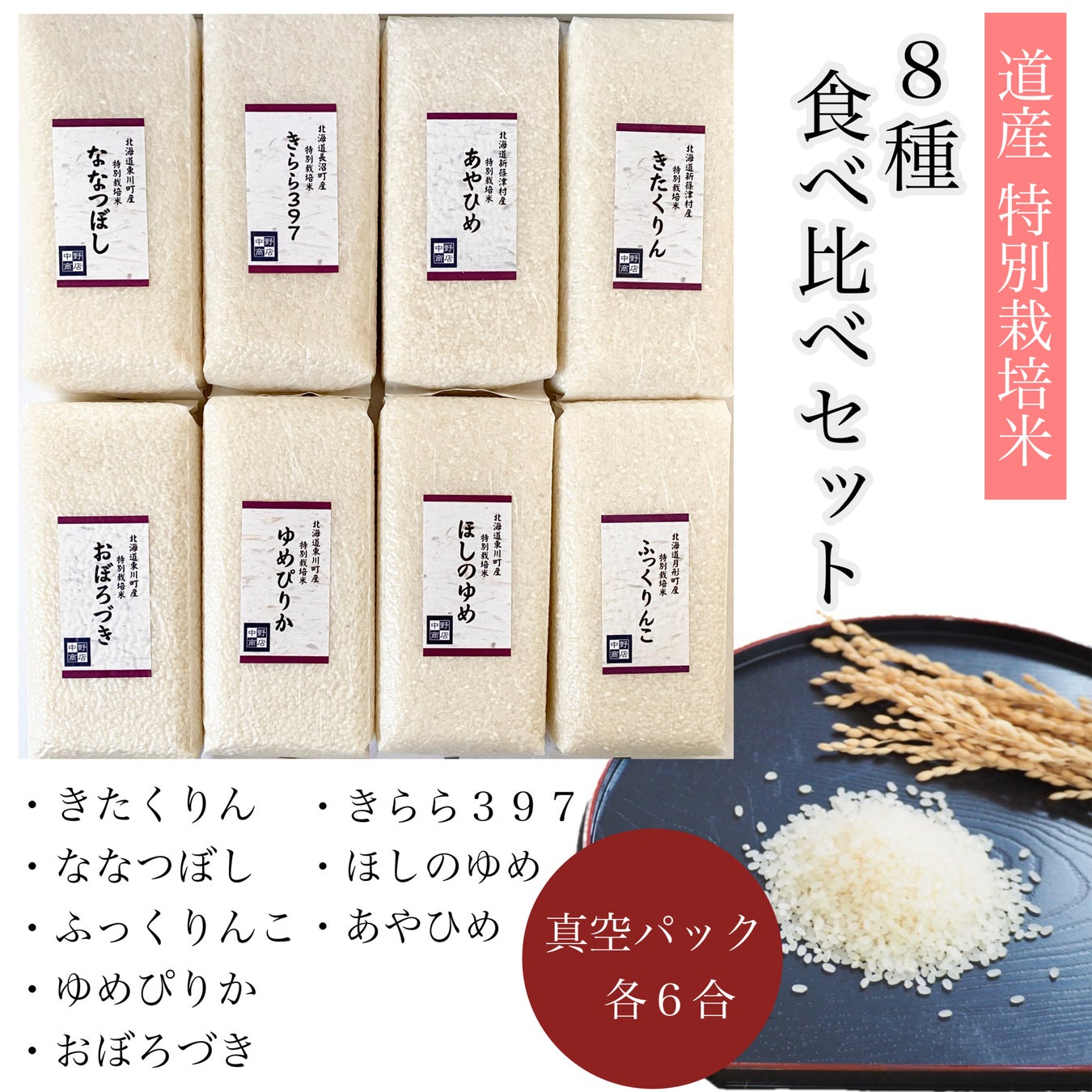 ■【特別栽培米】道産米8種食べ比べセット(各6合)